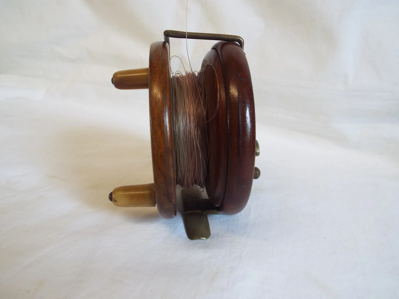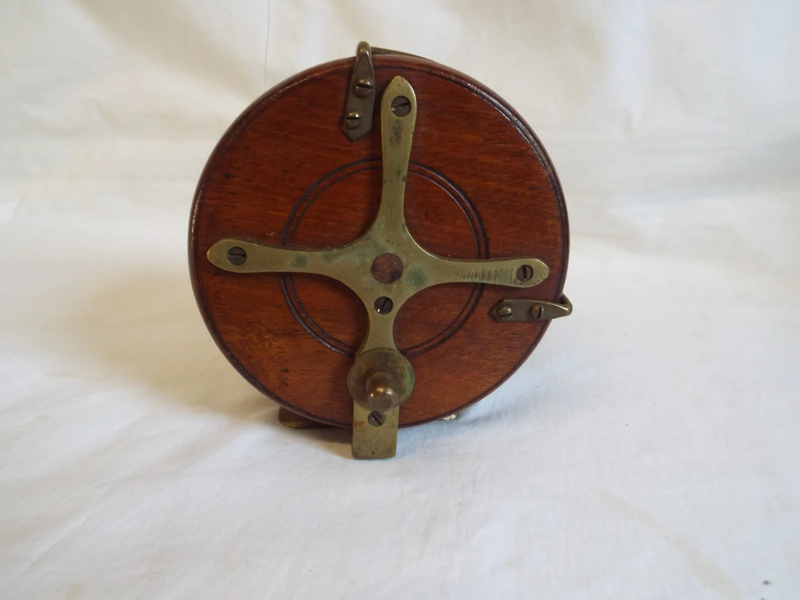 Vintage brass mounted wood Nottingham star back 4" reel