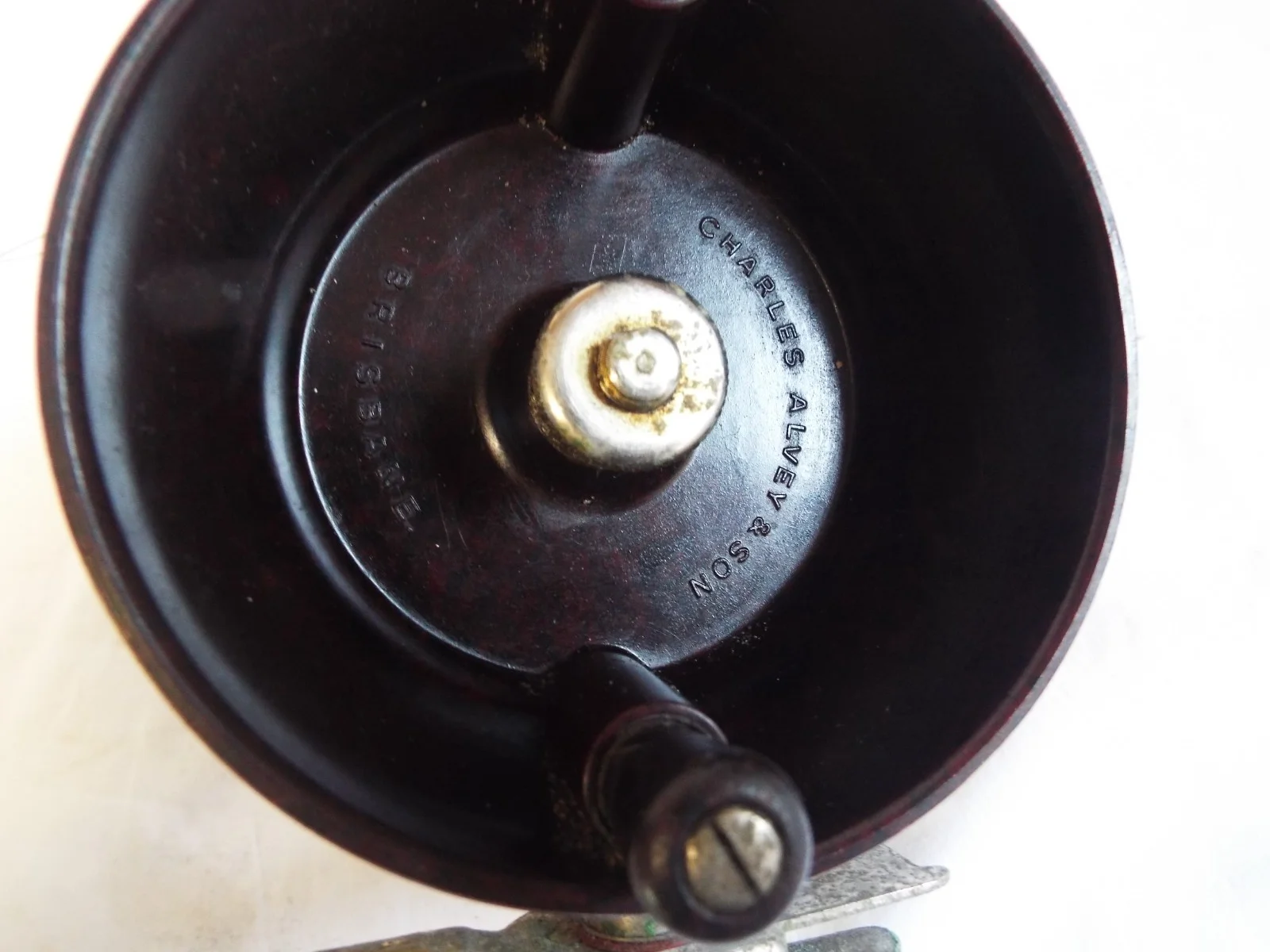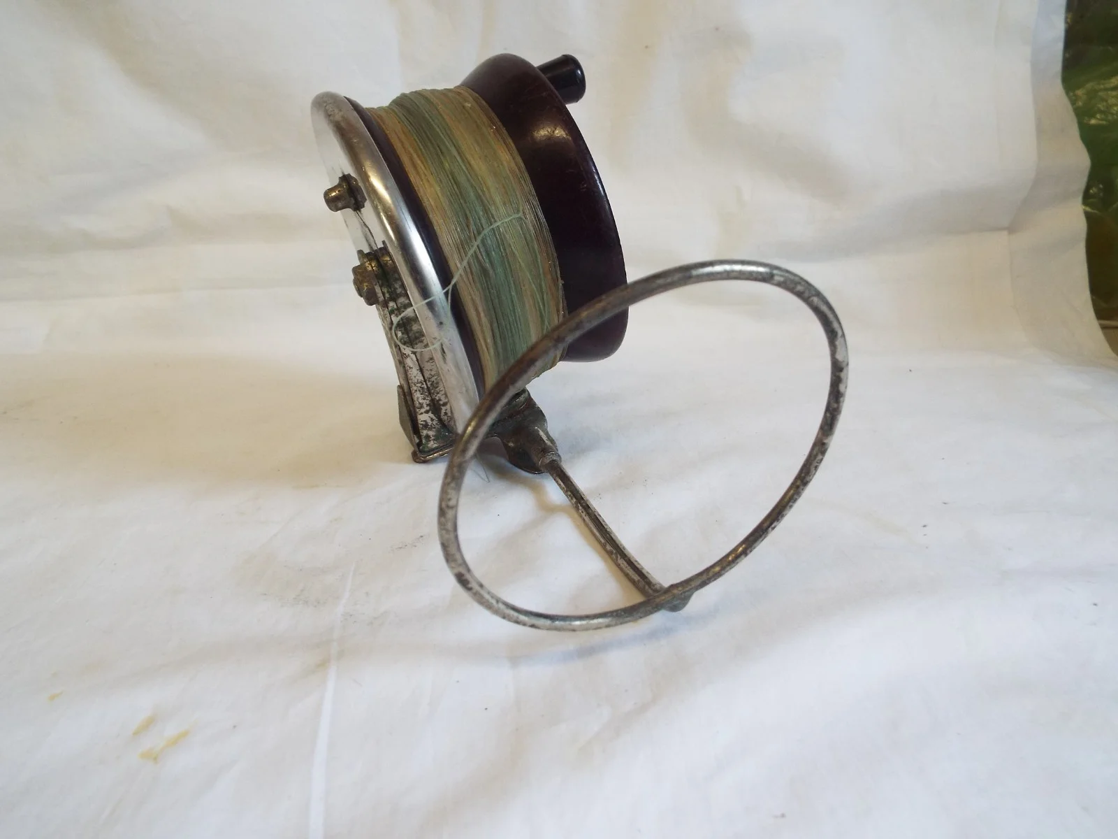 A vintage Charles Alvey and sons side cast bakelite 4.25" reel with chrome mounts, lever works to swap positions, the check works, in used condition as seen with surface corrosion t the chroming.
