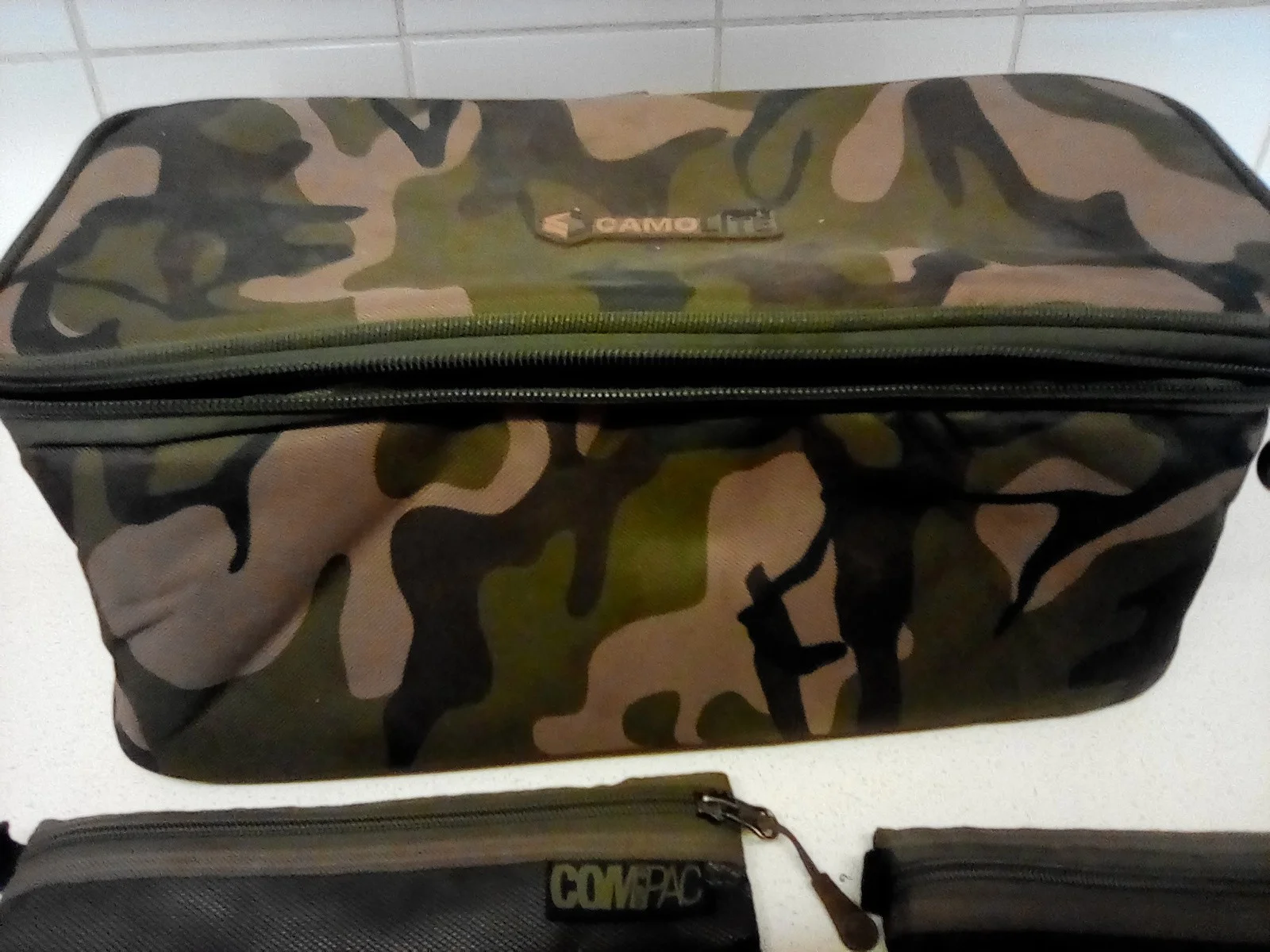 FOX CAMOLITE BAG AND 2 CAMOLITE BIT PUCHES IN EXCELLENT CONDITION WITH ALL ZIP0S WORKINGTHERE IS NO BUY IT NOW PRICE ON THIS ITEM AUCTION ONLY OR SENSIBLE OFFERS PLEASE TAKE A MOMENT TO LOOK AT MY OTHER FISHING ITEMS I HAVE FOR SALE.IF BUYING MORE THAN ONE ITEM AND YOU WANT THE POSTAGE TO BE COMBINED THIS IS DONE BY EBAY WHEN YOU GO TO PAY AND NOT DONE BY US.POSTAGE RATES APPLY TO MAINLAND UNITED KINGDOM ONLY. THE ONLY WAY I WILL SHIP ABROAD IS VIA THE GLOBAL SHIPPING PROGRAMME WHICH IS AVAILABLE THROUGH EBAY.B77