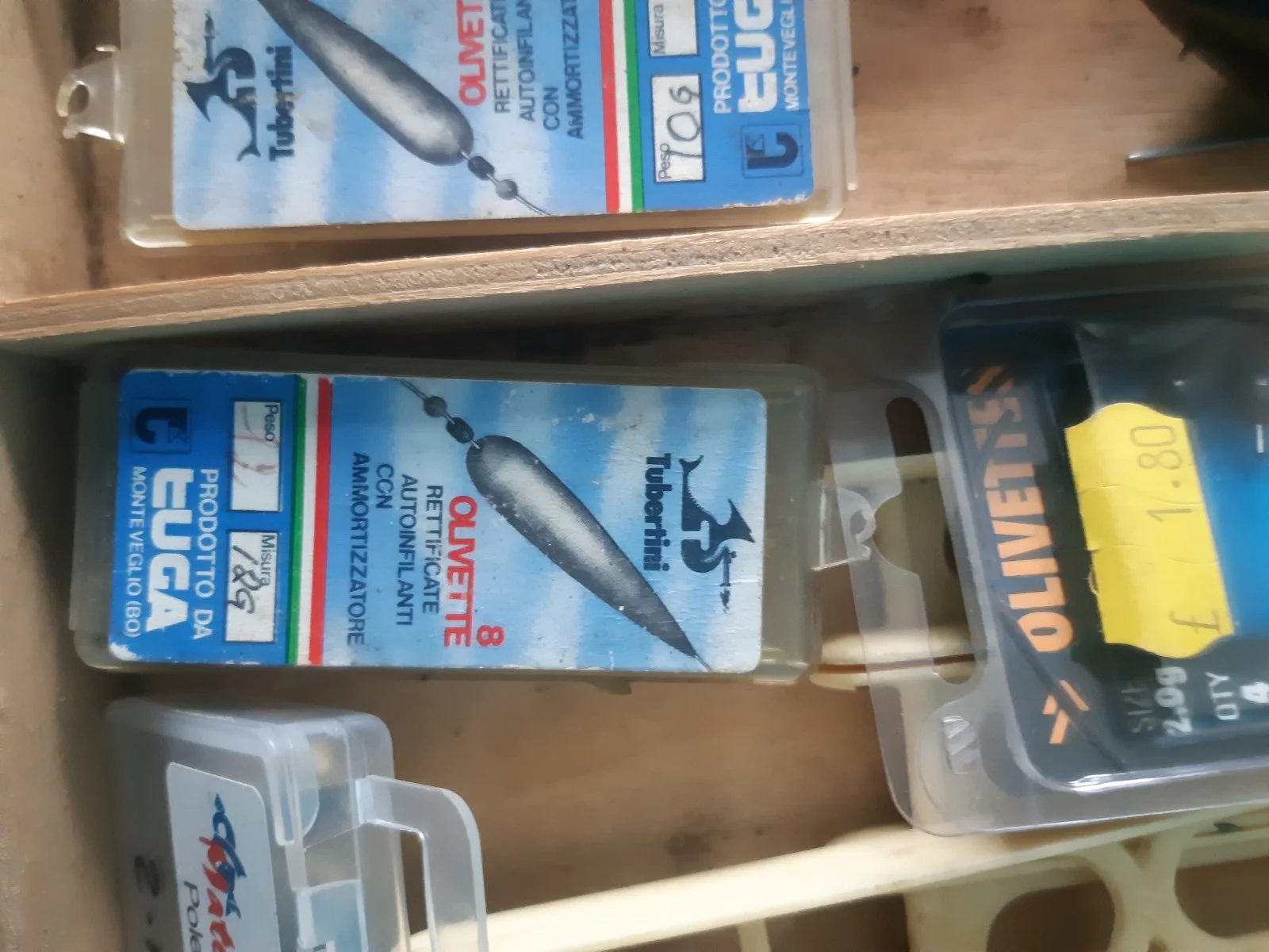 Here for sale we have a job lot of heavy pole floats 7 to 11 gramm with pole winders 4 x box of olivettes and wood carry box .thanks for looking any questions please ask check out my other items.