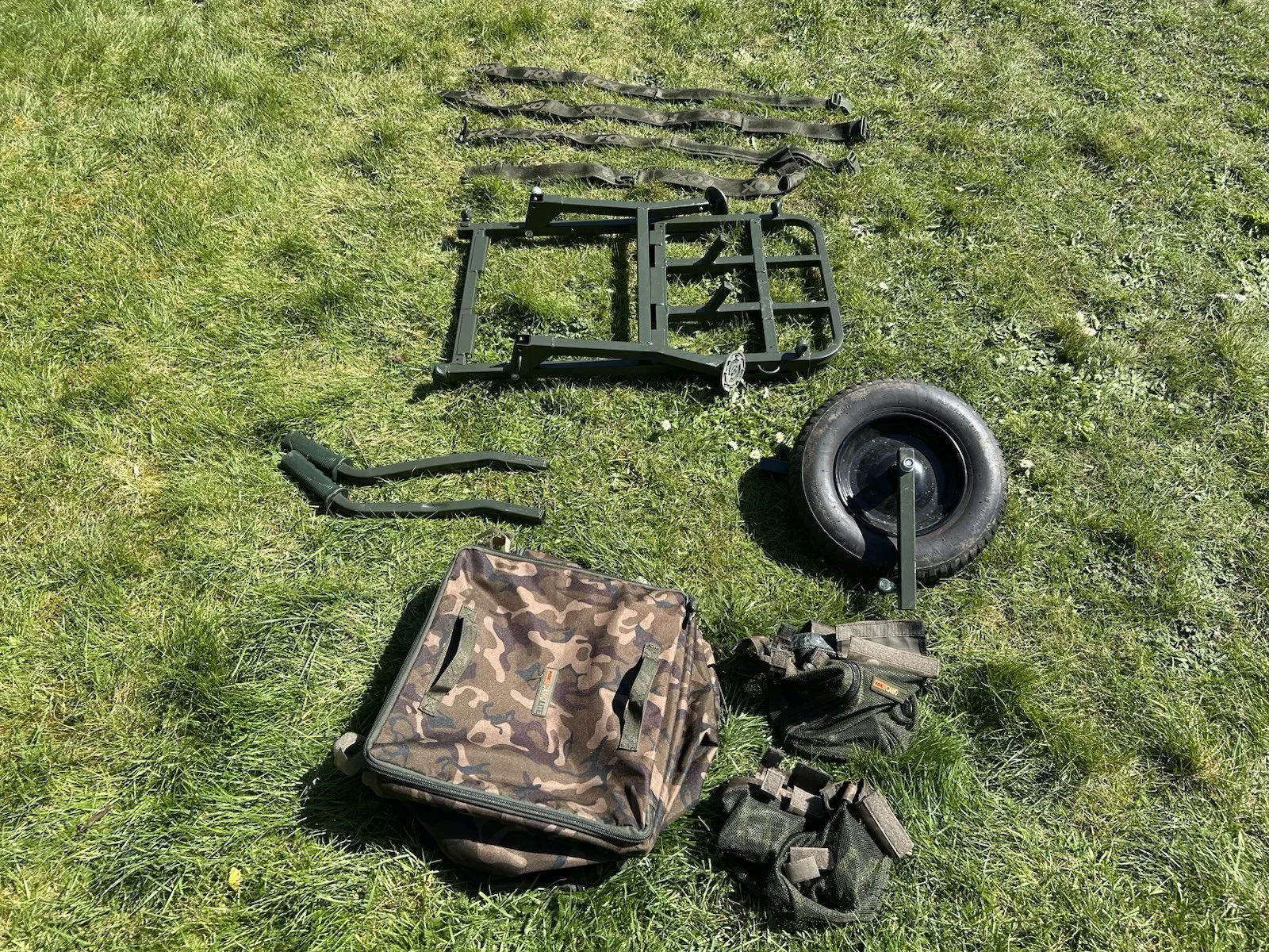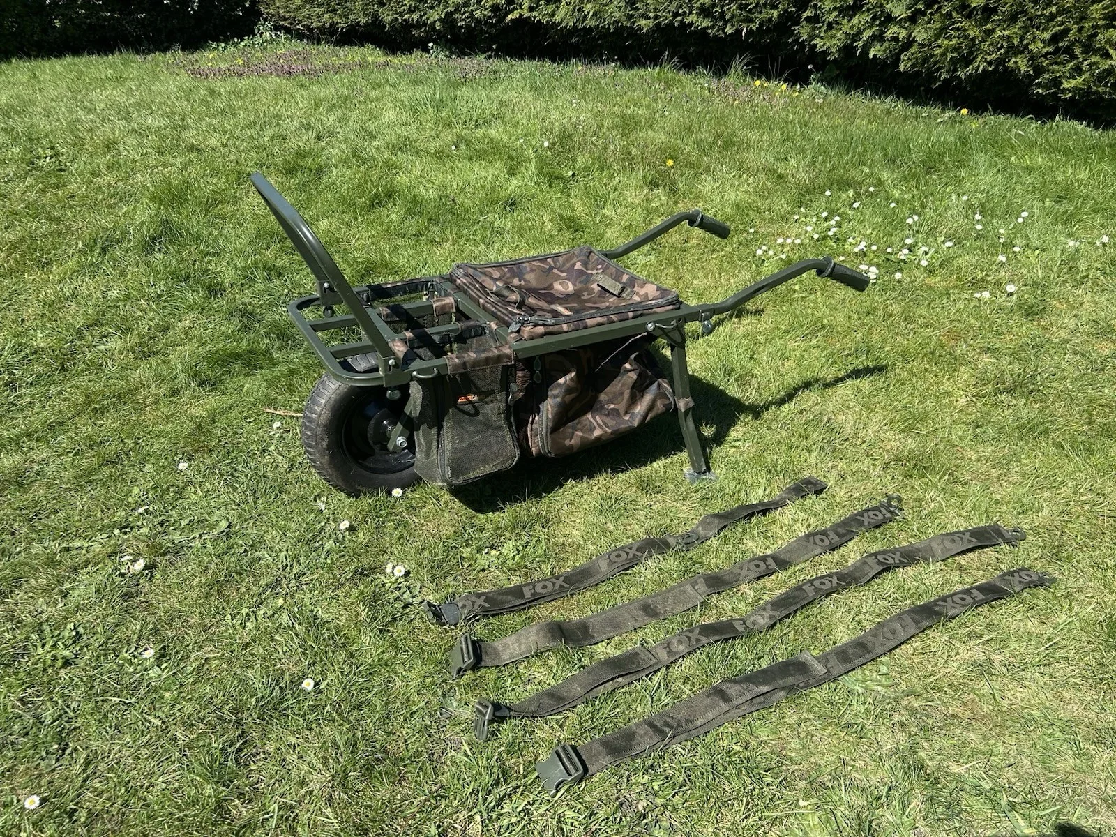 Fox FX Explorer Mk1 Carp BarrowThis is a compact barrow, but can be stretched to accommodate more gear for longer sessions. Has been used a few times since new but really not that many at all.Packed Dimensions: Approximately 79 x 61 x 23 cm.Weight: Approximately 20 kg (excluding accessories Key Details regarding the Fox Explorer Barrow:Design: Robust, high-tensile steel frame with a quick-release wheel system.Included Accessories: Supplied with a Camolite Under Barrow Bag, two mesh storage pockets, and two FX Universal Barrow Straps.Dimensions: It features an extendable front rack to increase capacity for longer sessions and folds down to fit into small car boots.Weight Distribution: Specifically designed to keep the weight balanced over the wheel