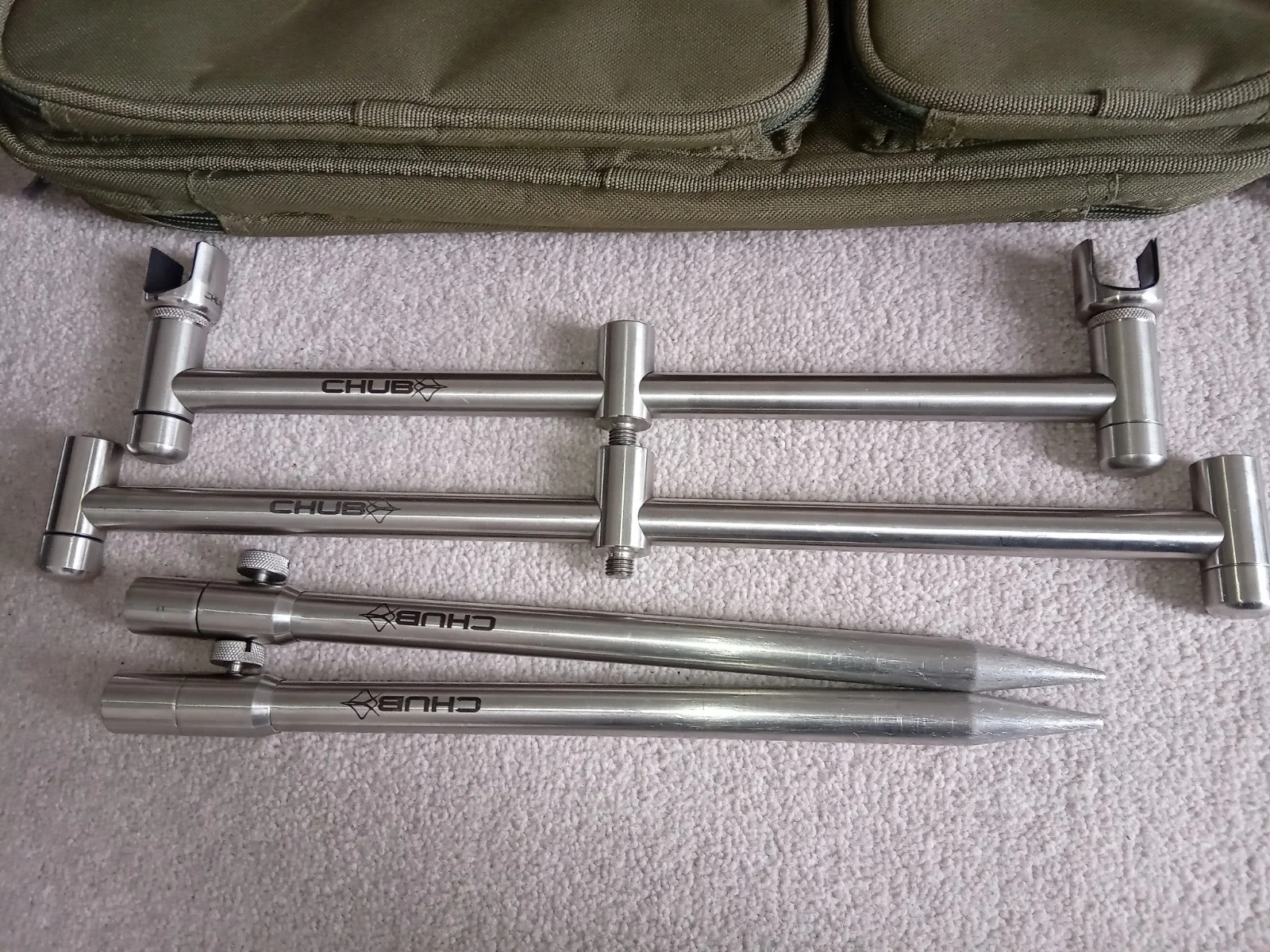 Selling a 3 rod chub precision stainless steel banksticks set. come with 2x fixed 3 rod buzz bars convertible to a goalpost set up,2x banksticks,2x chub stainless steel butt rests and an ngt bag to store it in. Any questions please ask.