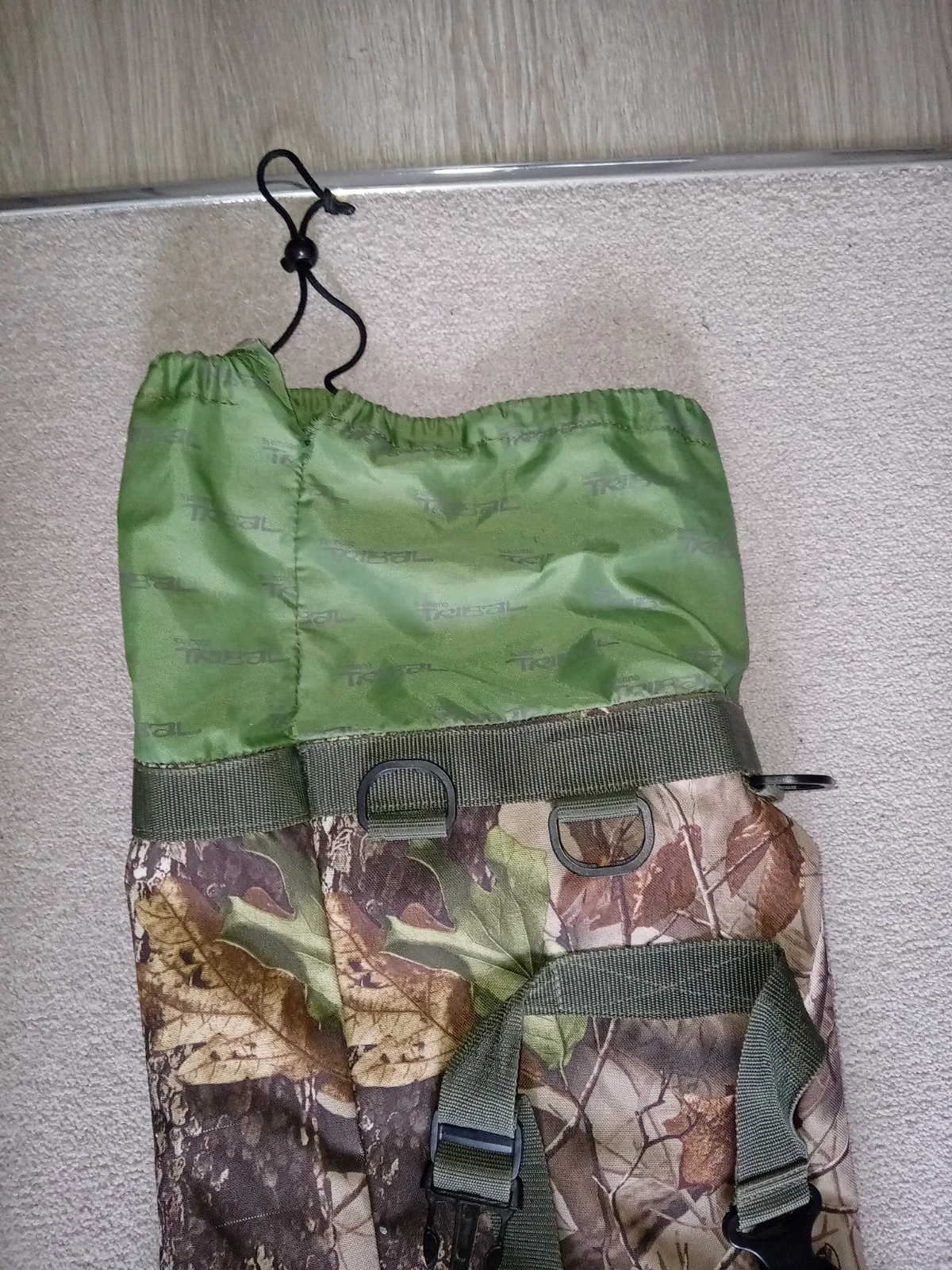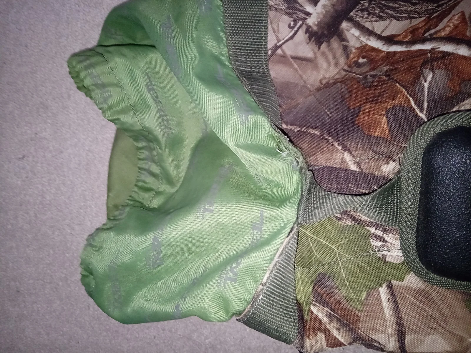 Selling a shimano tribal xt camo 3 rod quiver. it's had a repair to material in top as seen in photos. some wear on the hard plastic bottom but other than that it is in very good condition. all straps present,all zips good and all velcro and drawstring at the top good. any questions please ask.