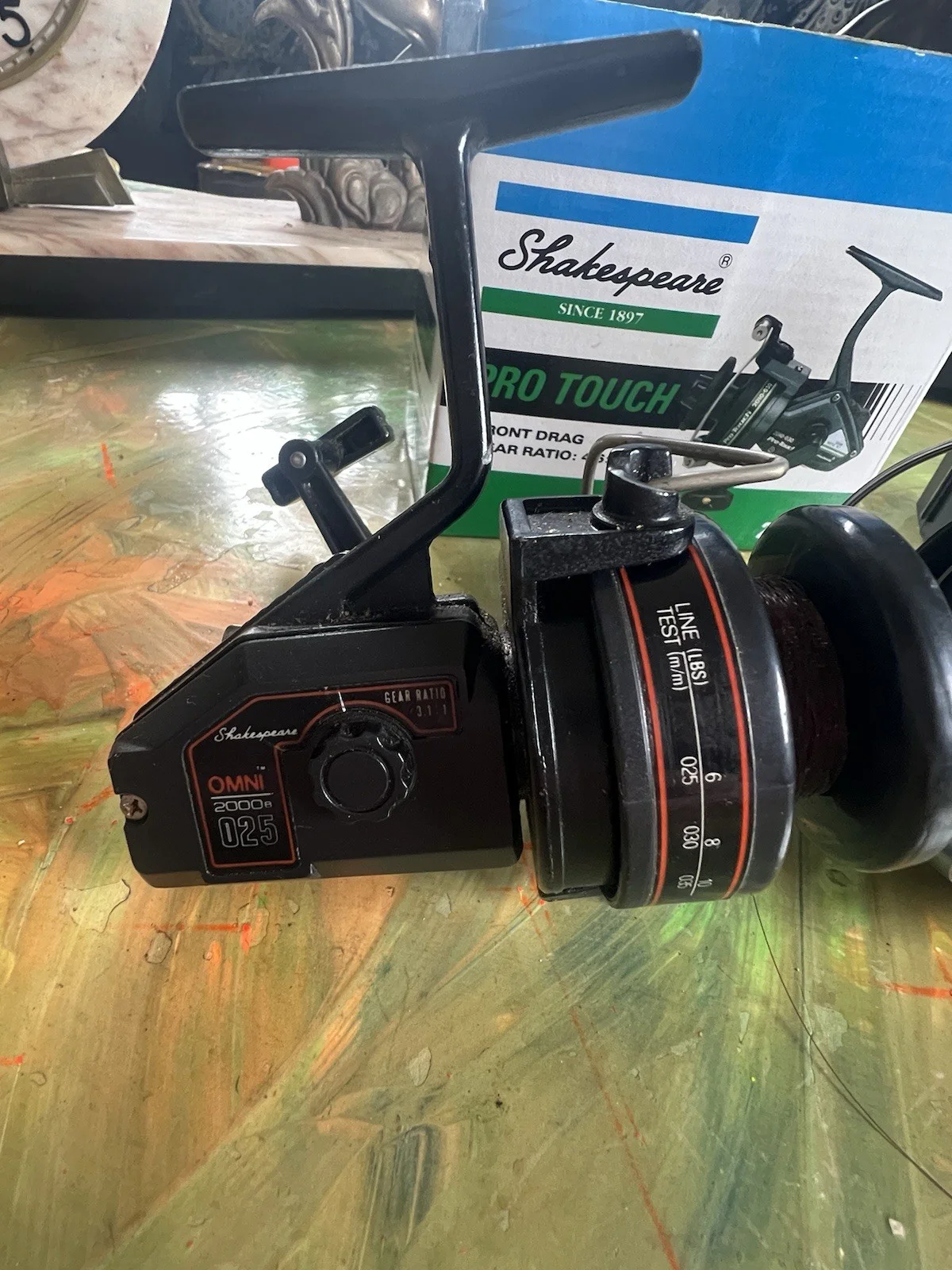 The product is a set of three fishing reels from the brand Shakespeare, including one that is brand new and still in its original packaging. These spinning reels come with an Optronic line indicator, providing anglers with a clear and accurate view of their line while fishing. Perfect for both beginners and experienced anglers, these reels offer quality and convenience in one package.