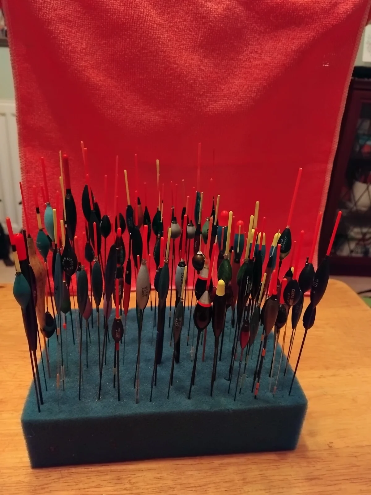 I HAVE FOR SALE NEARLY 100 POLE FLOATS SOME MARKED.PLEASE SEE PHOTOS OF WHAT YOU WILL BE GETTING.PLEASE NOTE THE SPONGE IS NOT INCLUDED.***DOWN IN PRICE ***DOWN IN PRICE ***
