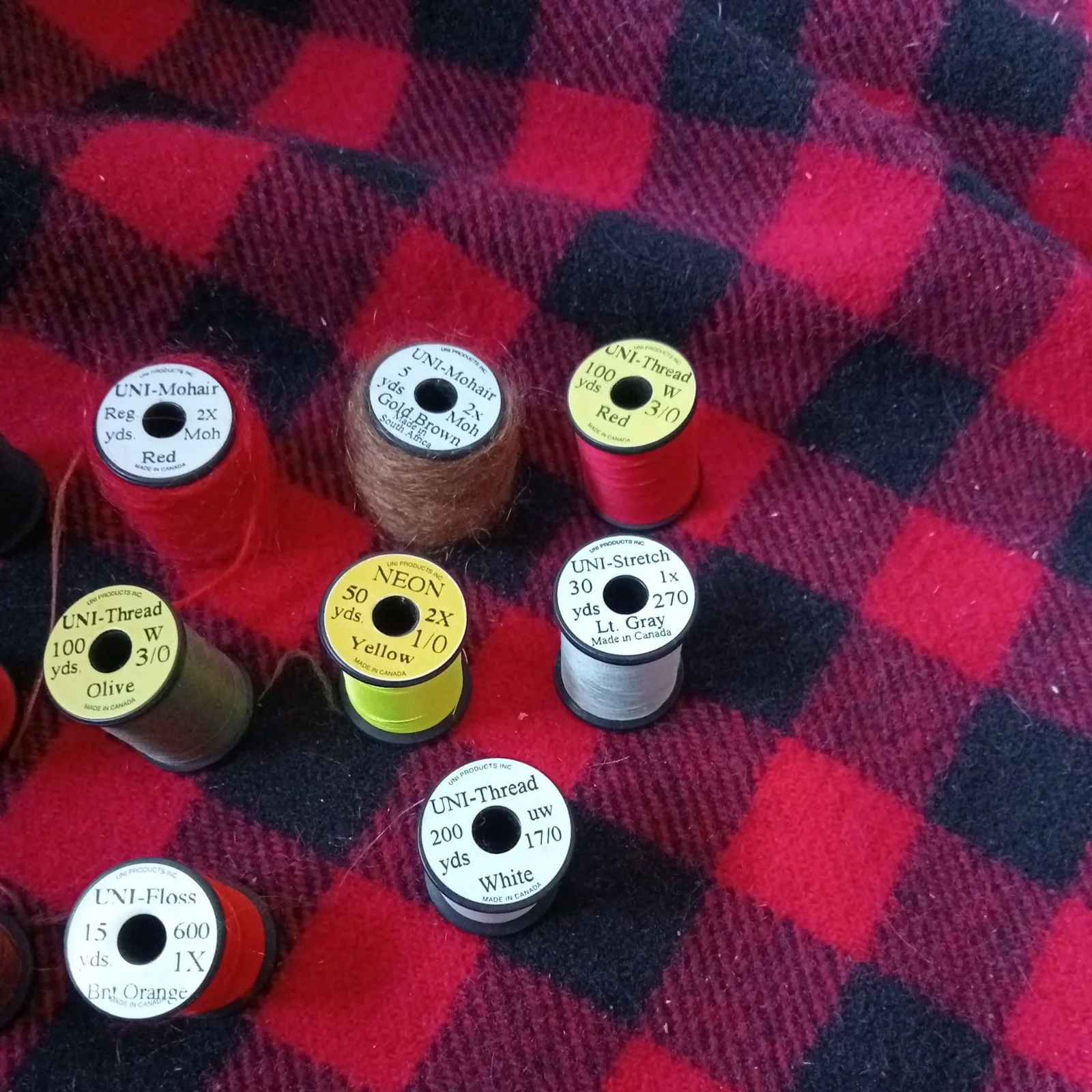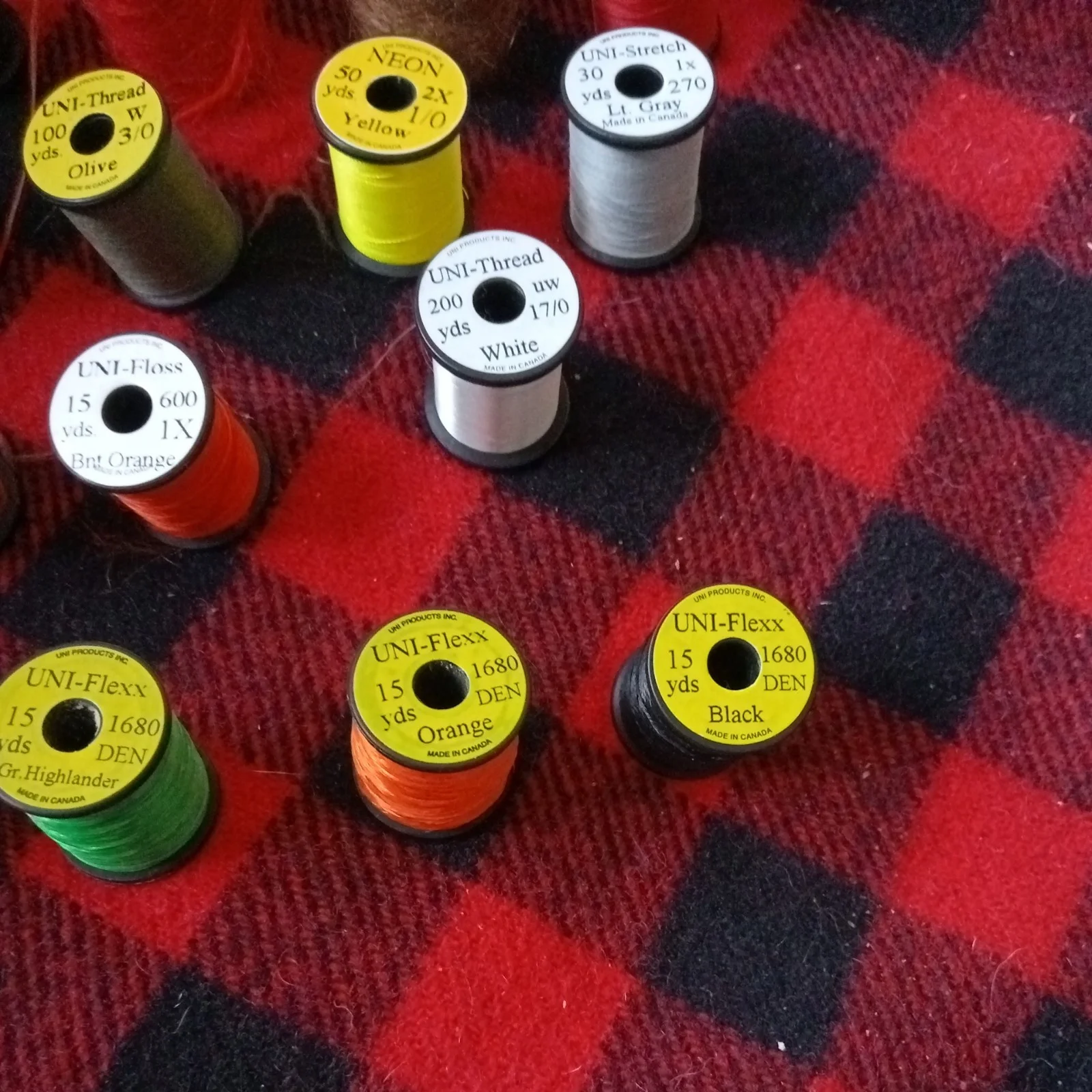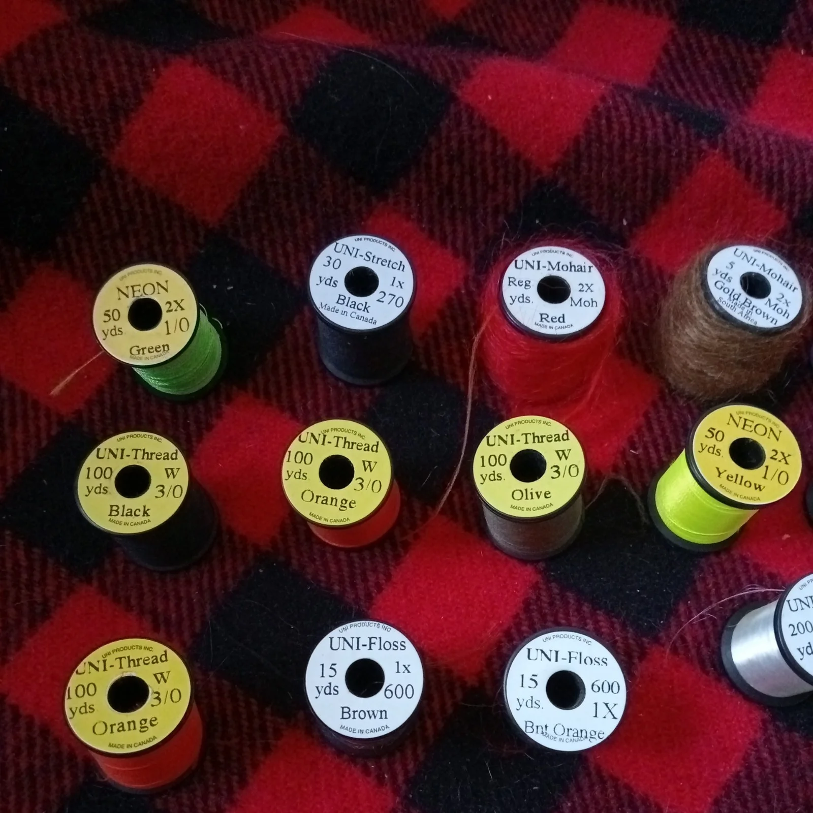 Uni Products Fly Tying Spools x 18. Neon. Flex. Stretch. Mohair and Thread