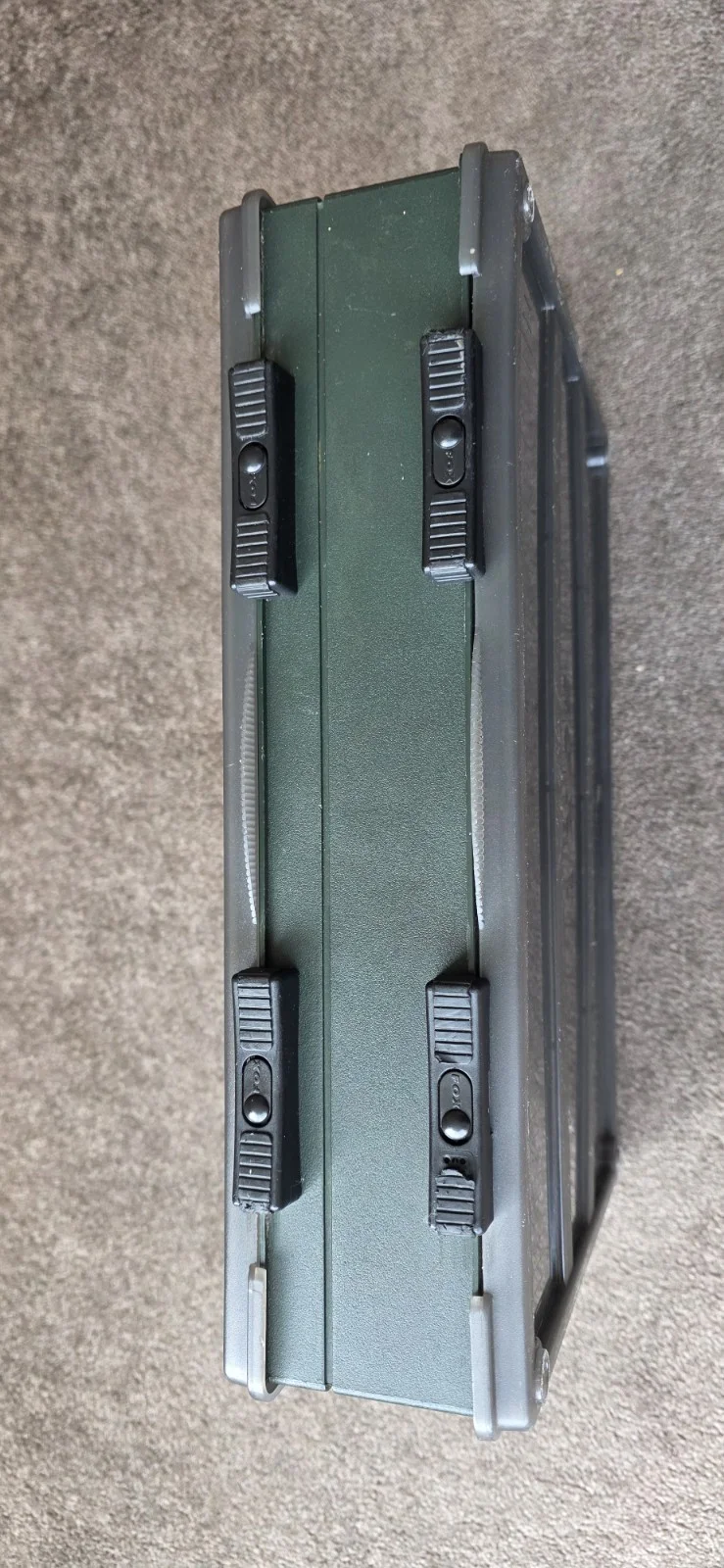 nice clean used fox double tackle box, a very tiny bit missing off catch as photo but doesn't effect it .....UK BIDDERS ONLY AND PAYMENT AT THE END OF THE AUCTION PLEASE