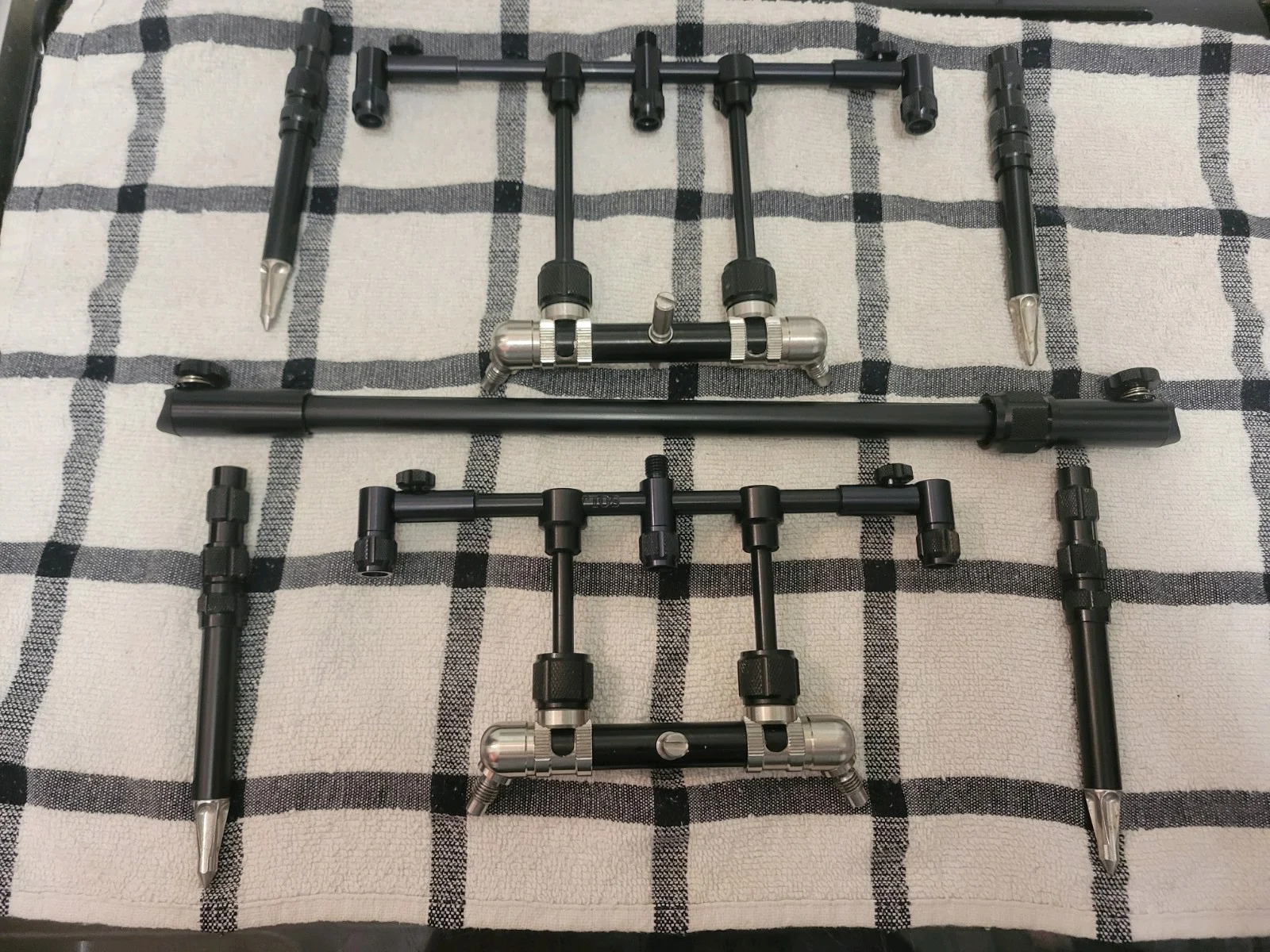 The Solar Tackle Blacklite 3-Rod Buzz Bars are designed for worldwide carp fishing. Made from durable aluminium, these buzz bars are adjustable to accommodate the perfect setup for up to 3 rods. Suitable for both men and women anglers, these versatile and lightweight buzz bars are a must-have for any fishing enthusiast looking to enhance their experience.First Picture is for illustration only.