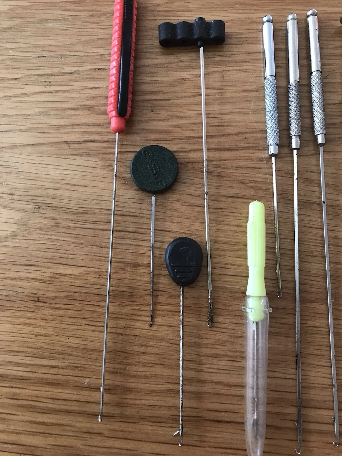 Assorted baiting needles including two Solar and a Boilie holder