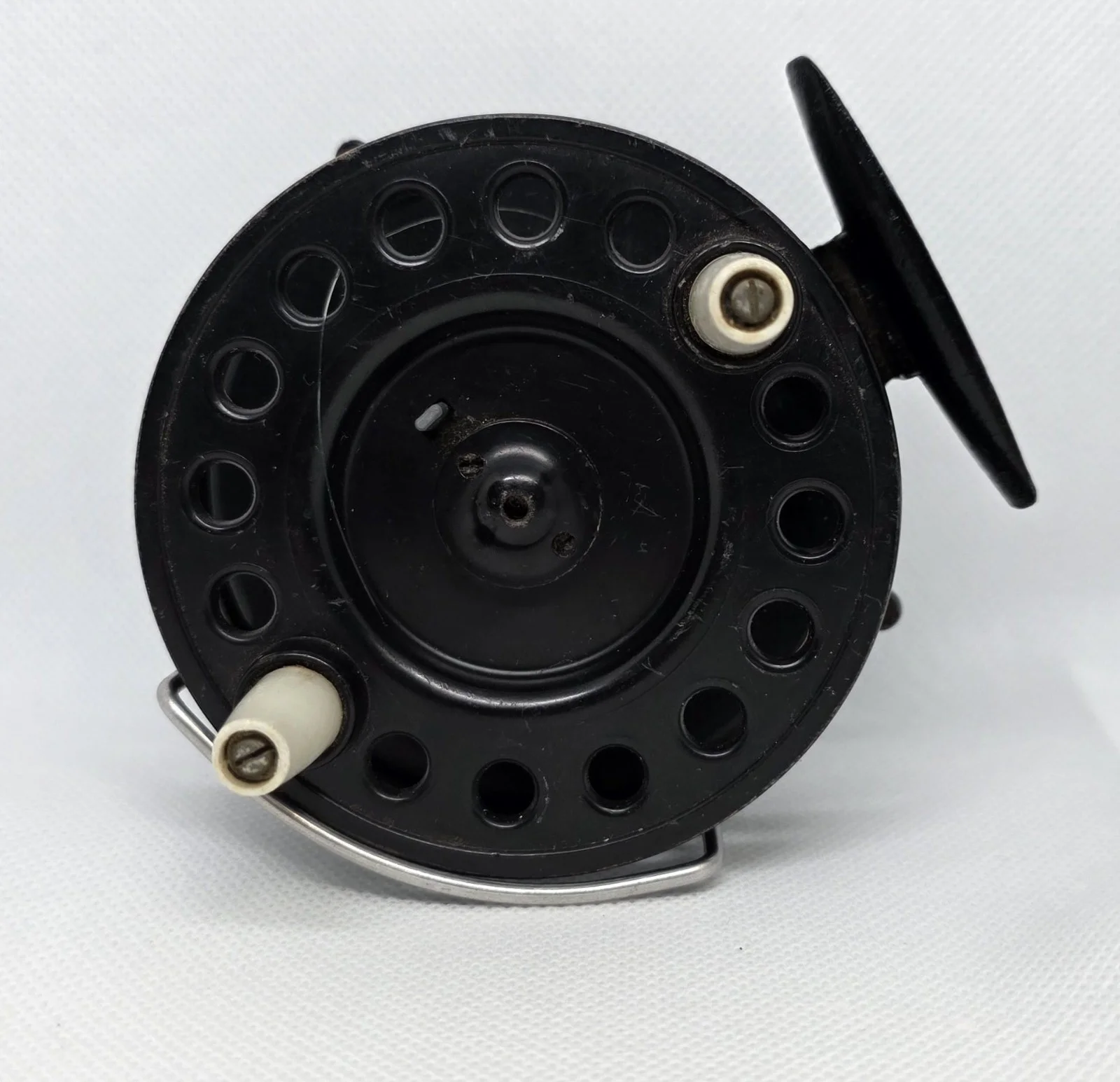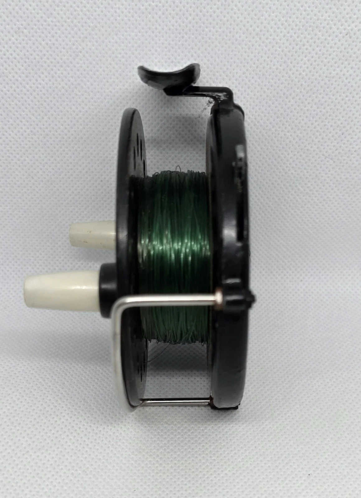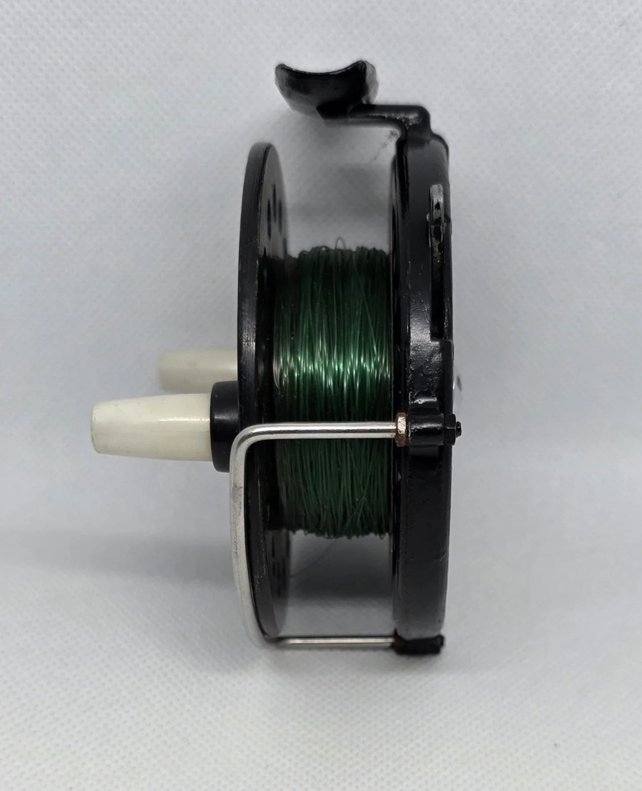 A nice centrepin from KP Morritts, it has been painted, although it seems a good job. I think it was probably a reel that was used and tidied to keep out the weather.