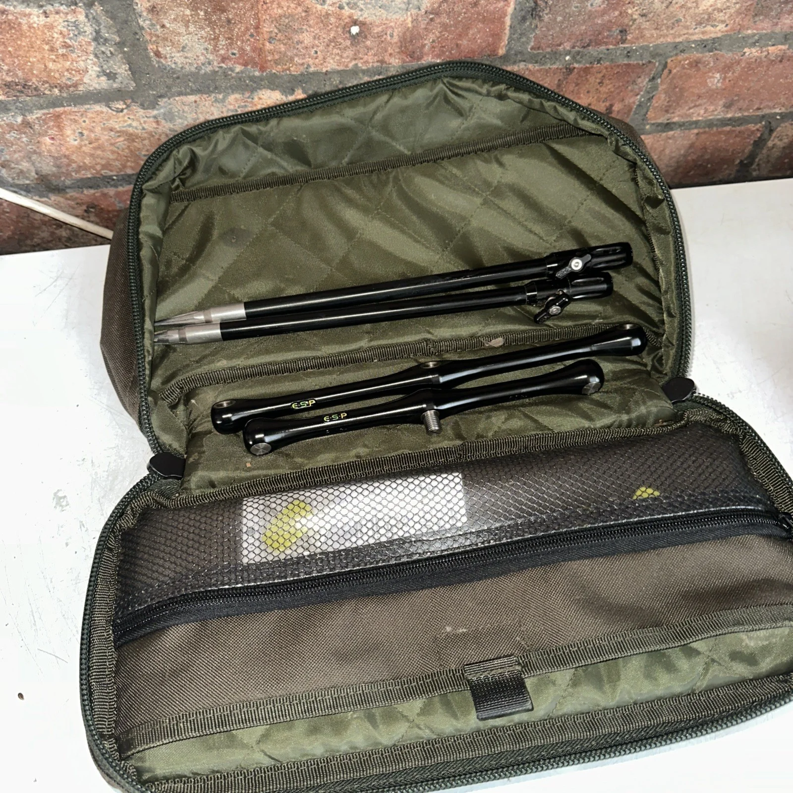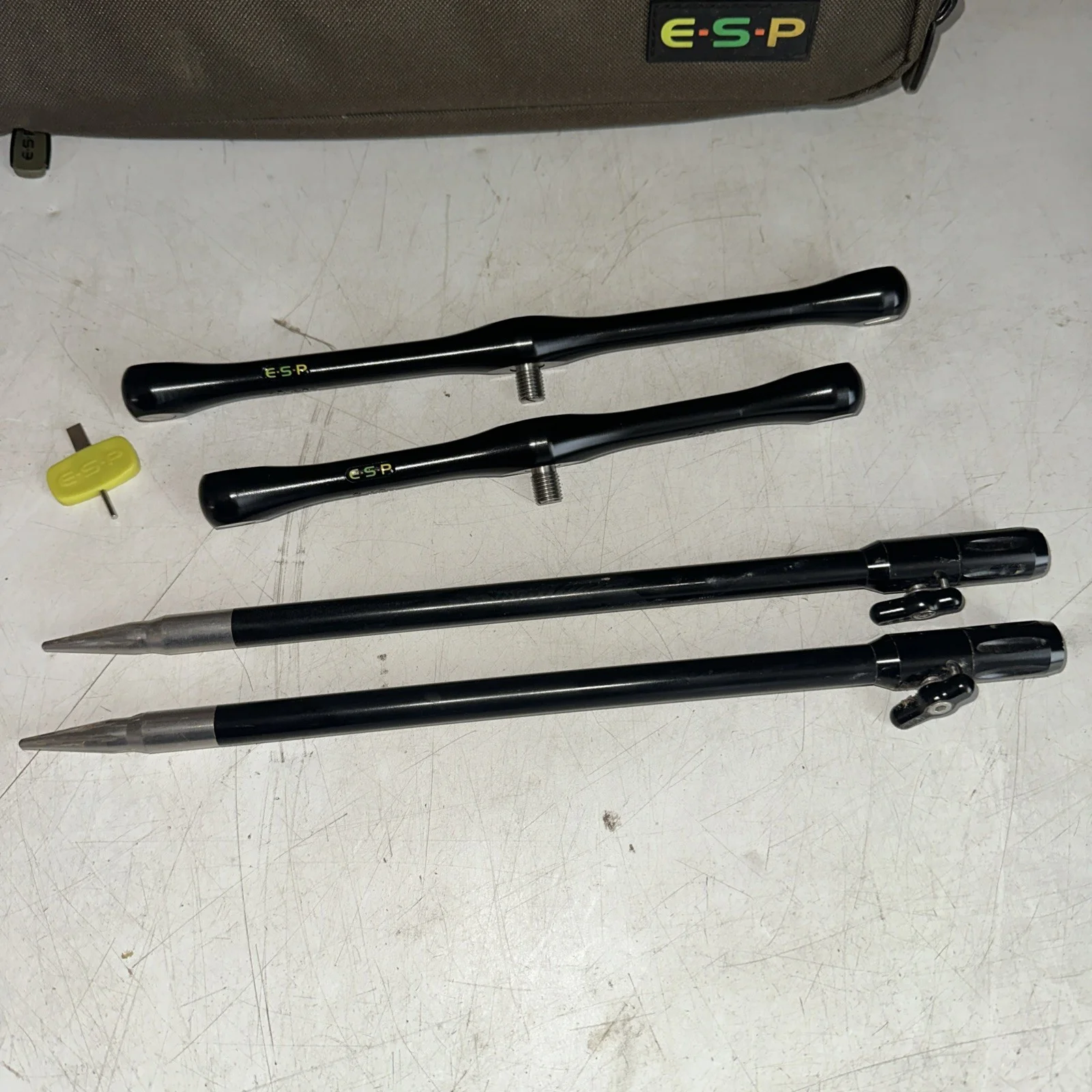 Used but in good condition. Bit of light dirt on buzz bar pouch and bankstick points.2 x 12 inch esp banksticks8 and 10 inch 3 rod fixed buzz bars. Esp 3 rod buzz bar pouch.