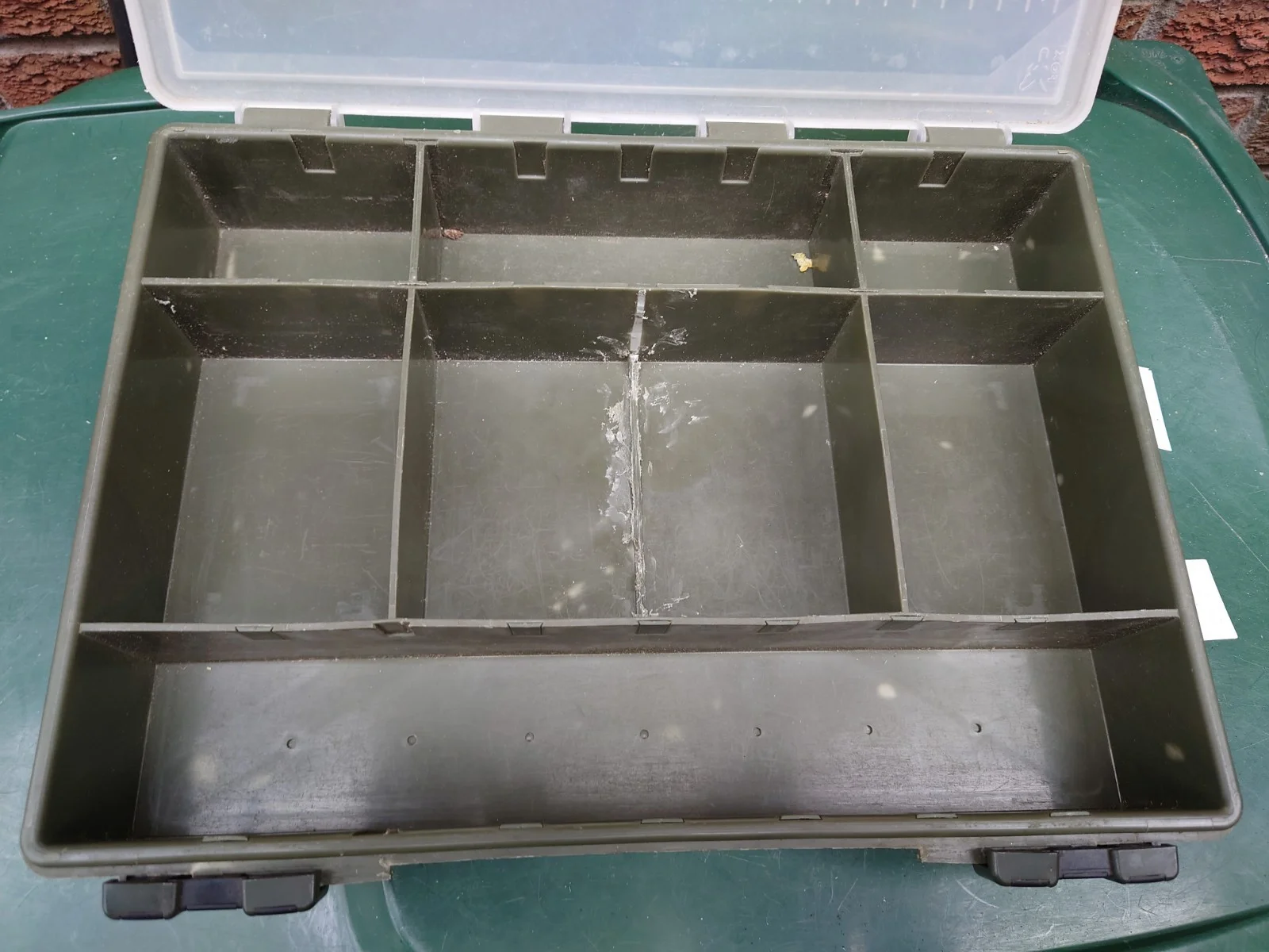 The Fox Box is a specialised kit designed for coarse fishing, specifically targeting carp. With a sleek green design, this terminal tackle includes essential components for a successful fishing trip. This kit, featuring one piece in the pack, is a must-have for any angler looking to enhance their fishing experience.crack in the corner and middle section cut out (see pics)