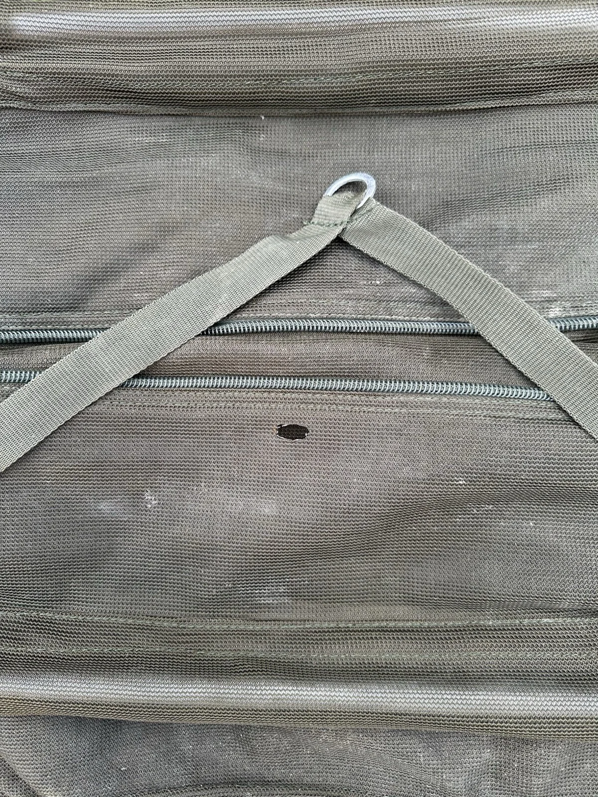 Trakker retention sling and stink bag Used trakker retention sling, comes with pocket zip with string on to attach when slinging carp for time Tiny hole on top of sling , doesn’t effect use and at very top, don’t make a difference (see pic)