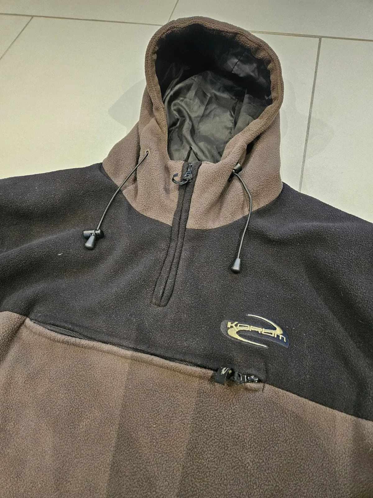 korum fishing fleece - hoodie.in very good condition.size large.quarter zip with kangaroo pouch and 2 zip pockets.1