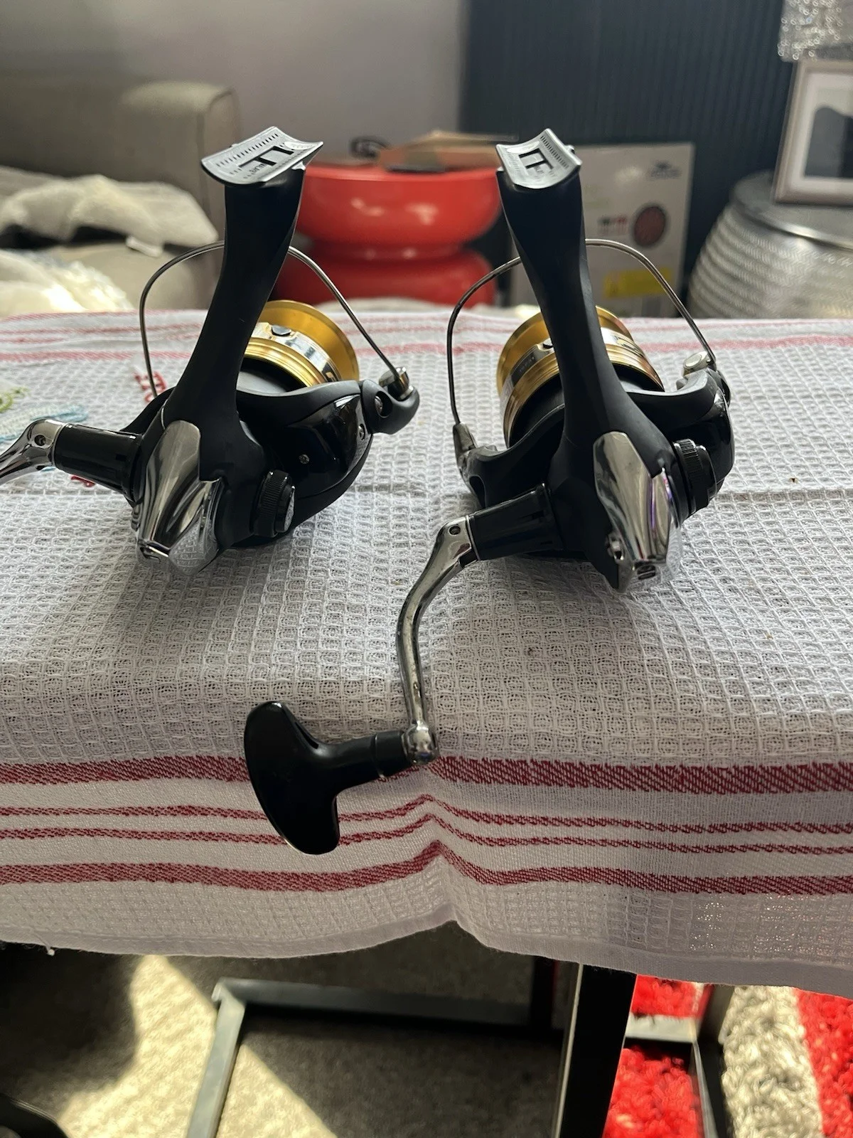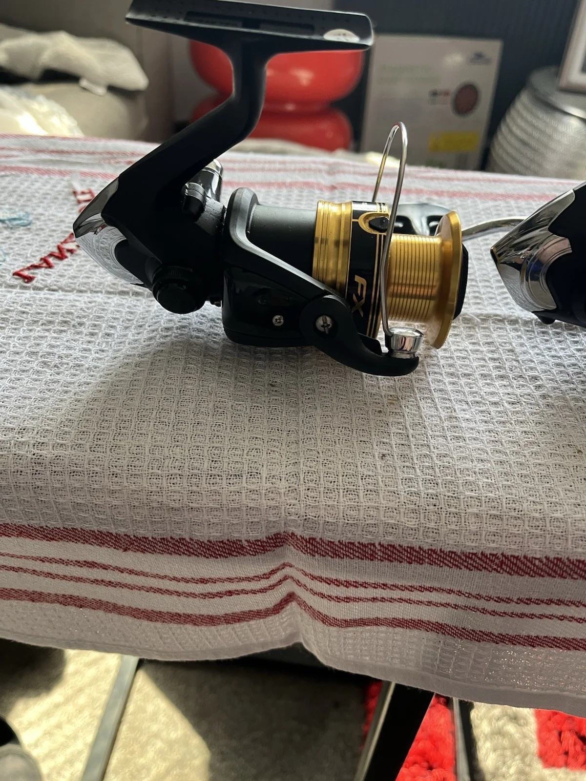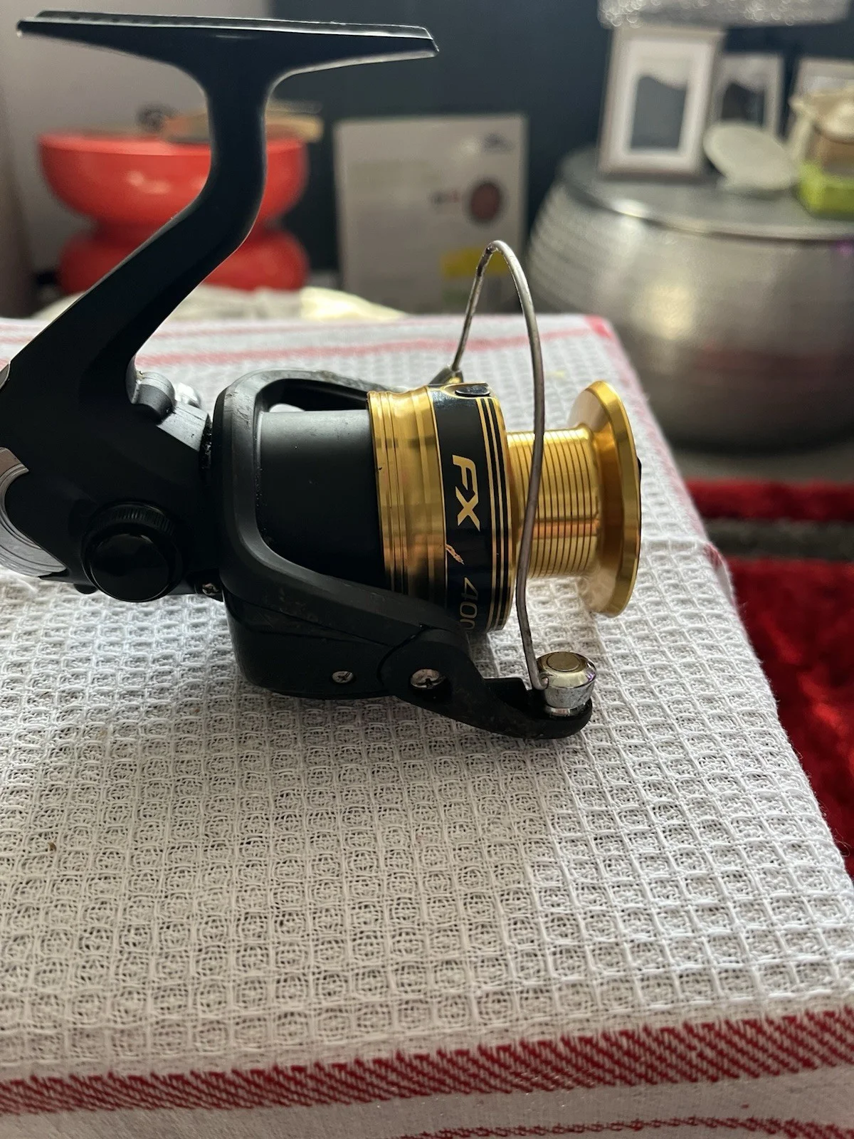 The SHIMANO FX 4000FC Front Drag Spinning Fishing Reel in black is a high-quality fishing reel designed for freshwater fishing. With a gear ratio of 5.2:1 and a maximum drag of 8.5 kg, this reel offers smooth and durable performance. The aluminum spool, along with the 3 ball bearings, ensures reliable line recovery of 81 cm per turn. Perfect for both left and right-handed anglers, this spinning reel from Shimano is a must-have for any fishing enthusiast looking for precision and control in their fishing experience. One as new other used a few times but work fine