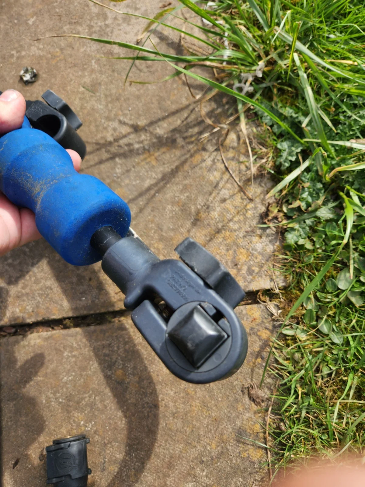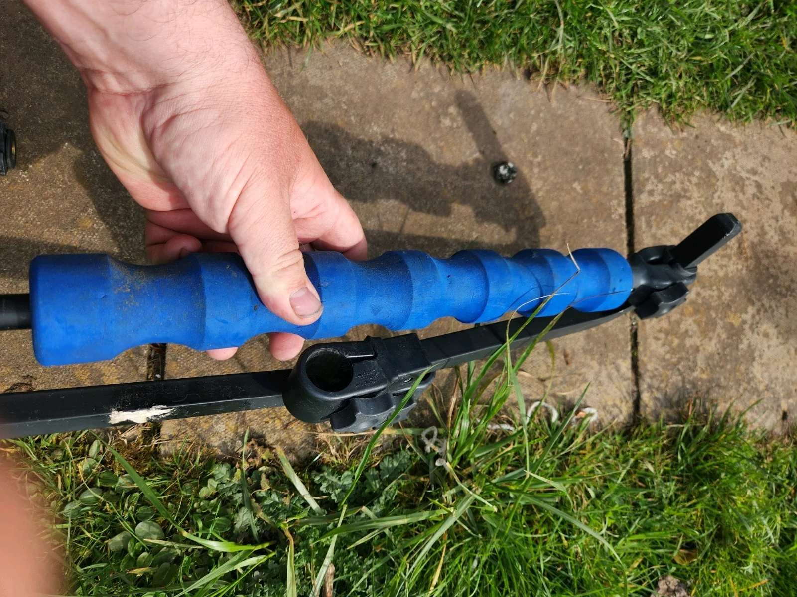 prestonpole supportovrall 58cm wideovrall 35 x 13cm bracketbrackts can be angled to reduc or widenmax fitmnt 30mm dia leg can add inserts if you lt m know what siz you wantused surface marks from use / age some metal exposed oxidisation / minor rust to knob threads by work fine