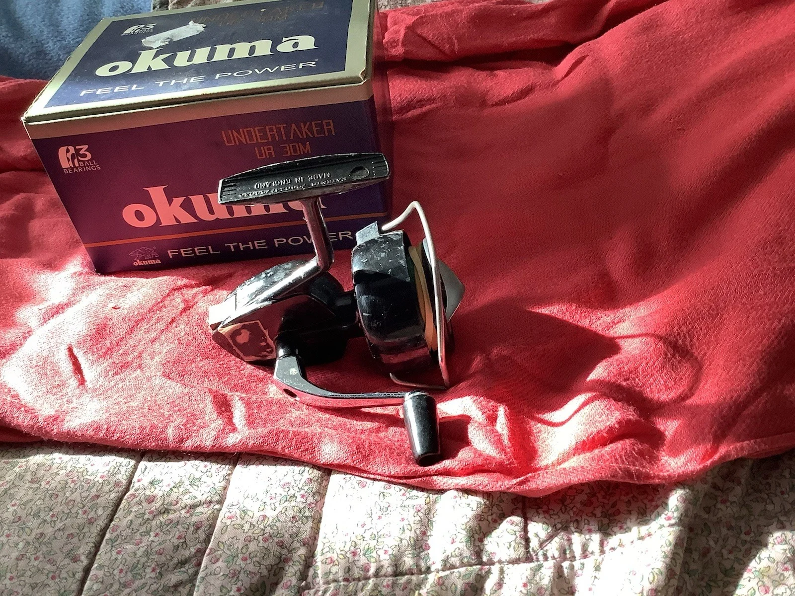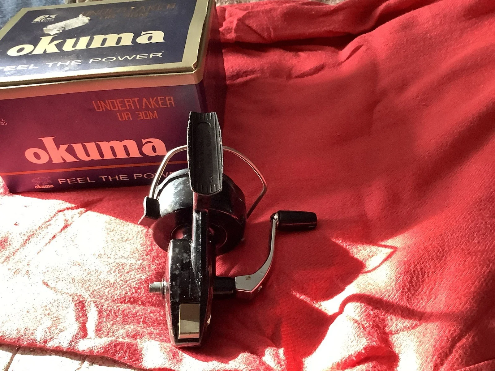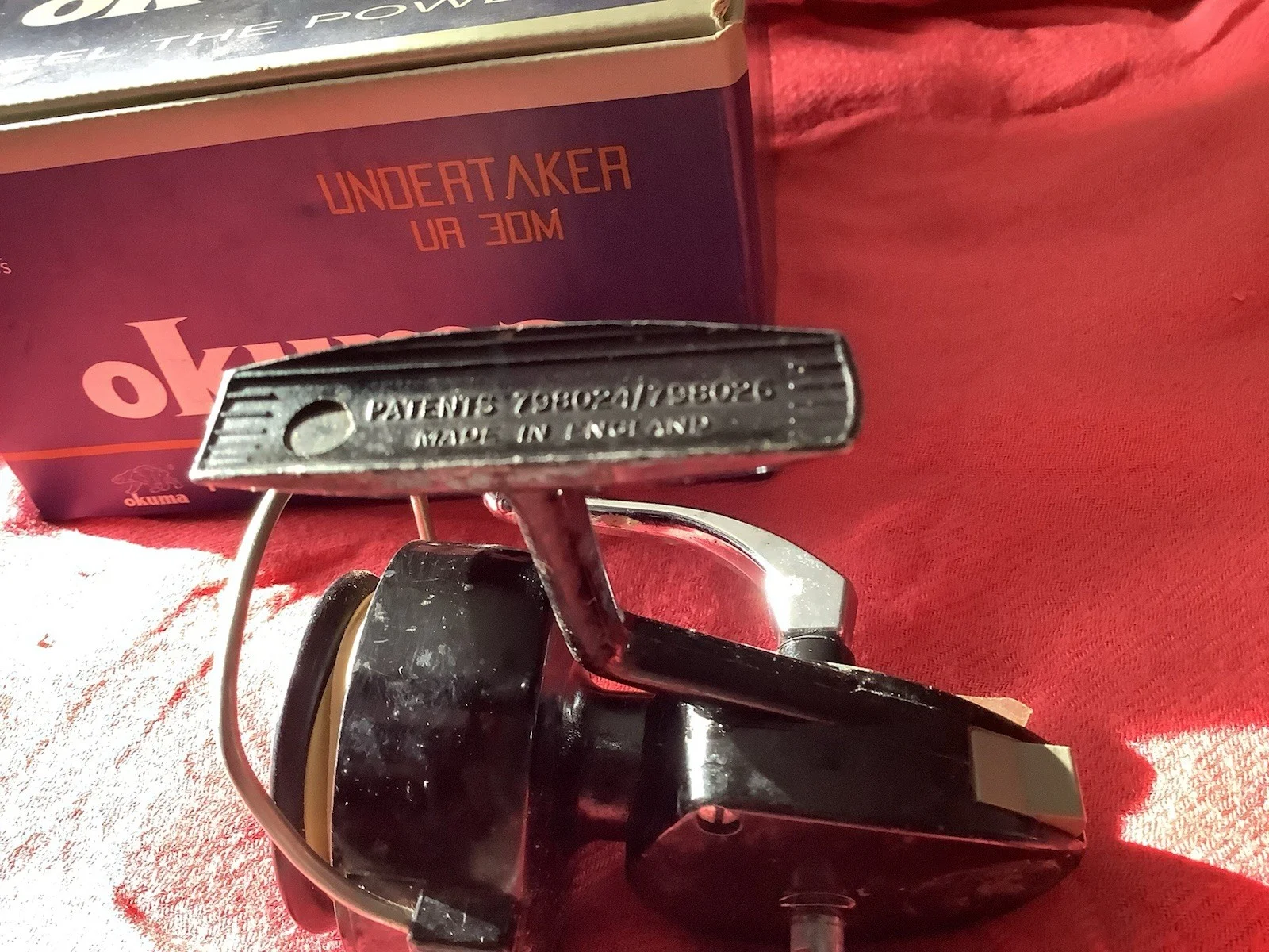 Please look at the photos as they are part of the description.I am sorry but I do not know anything really about this fishing reel.The box shows a OKUMA UNDERTAKER UR 30 M,. not the reel stated on the box.I have now been informed by another eBay member,thank you David, that the reel inside is an old English reel, which I was unaware of.It appears that though used it will still work, no stopping or pulling on the wheel.Please ask any more questions if you need to.Thank you.