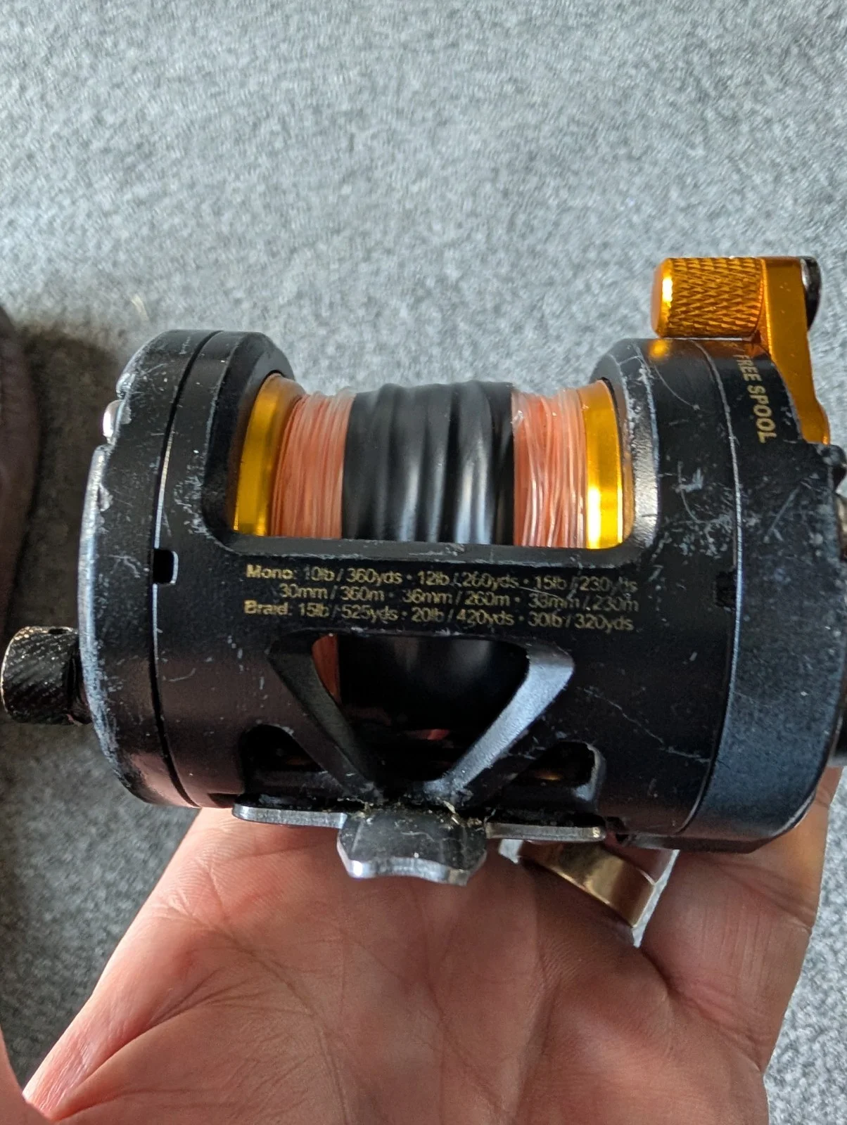 here I am selling a used PENN FATHOM 12 MONO MAGGED Reel this is a used reel but is still in very good working condition.it has a full metal body so any marks you can see in the photos are just cosmetic.the spool bearings have recently been upgraded to abec 7s.the reel runs incredibly smooth.and fast but the fitted mono mag masters the speed beautifully.it is also fitted with PENNS highly acclaimed HT 100 CARBON DRAG WASHERS.It will never win a beauty contest but it will give you a good chance of putting a bait where you want it and in the right hands land anything that swims of our beaches.happy biddingUK BIDDERS ONLY