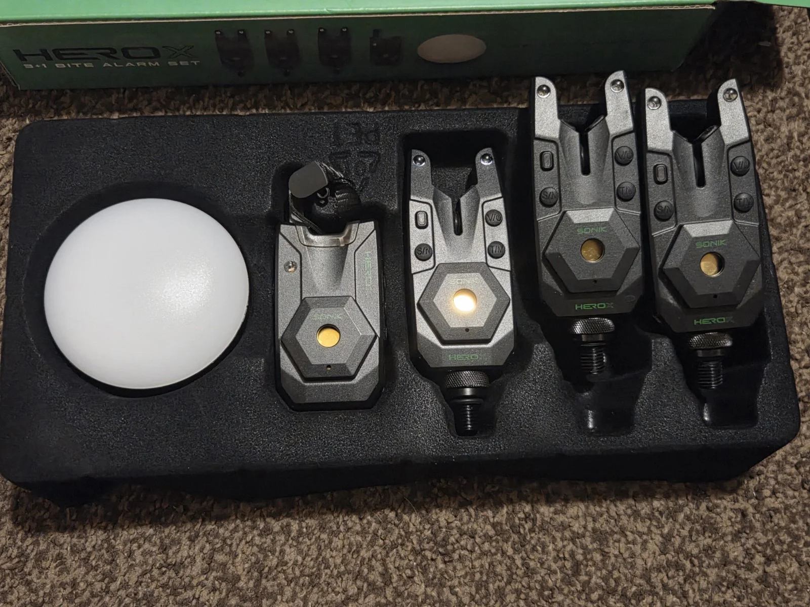 Sonik Bite Alarm Set Hero X 3 + 1 with Receiver + Light Carp Fishing