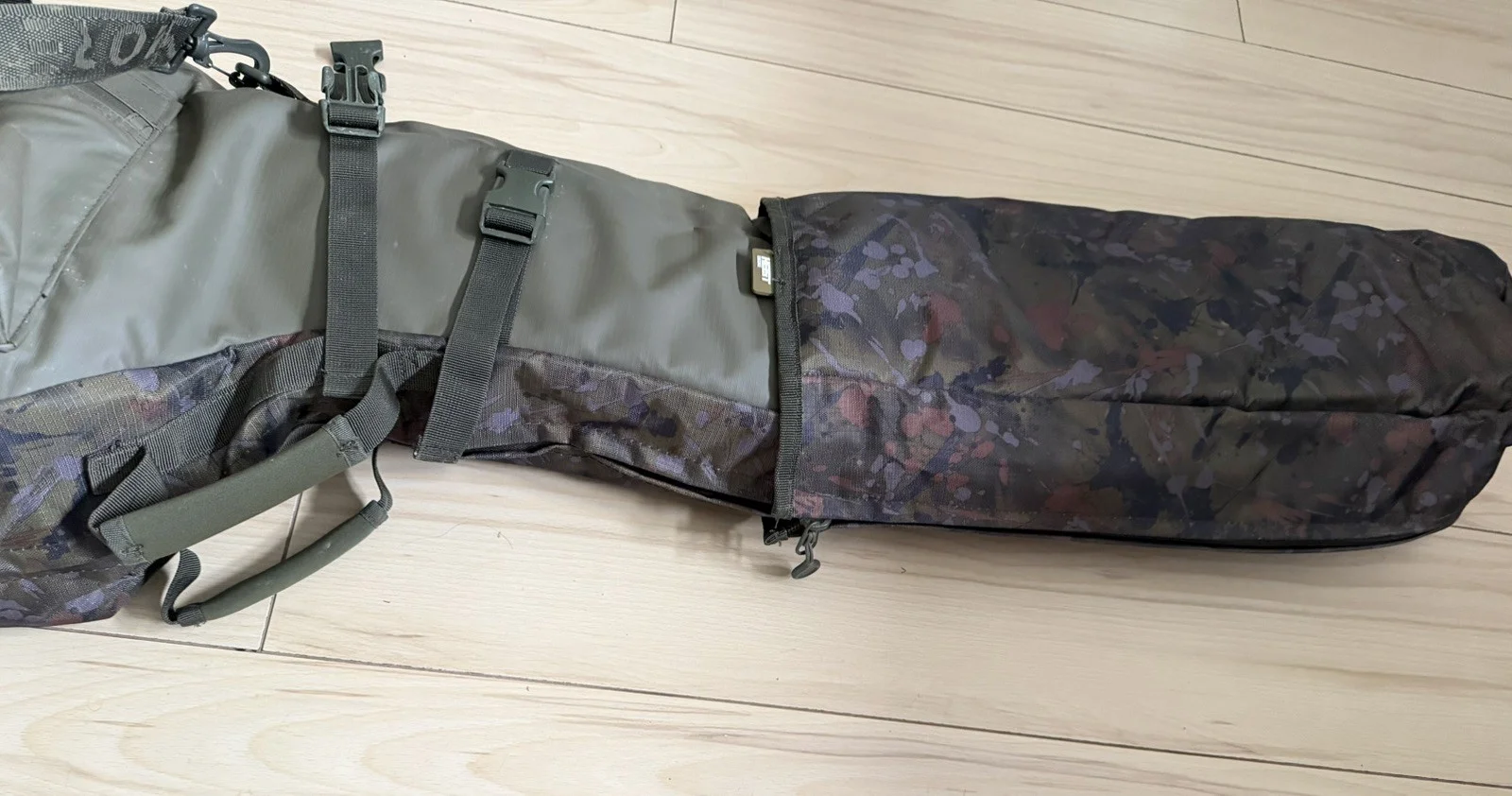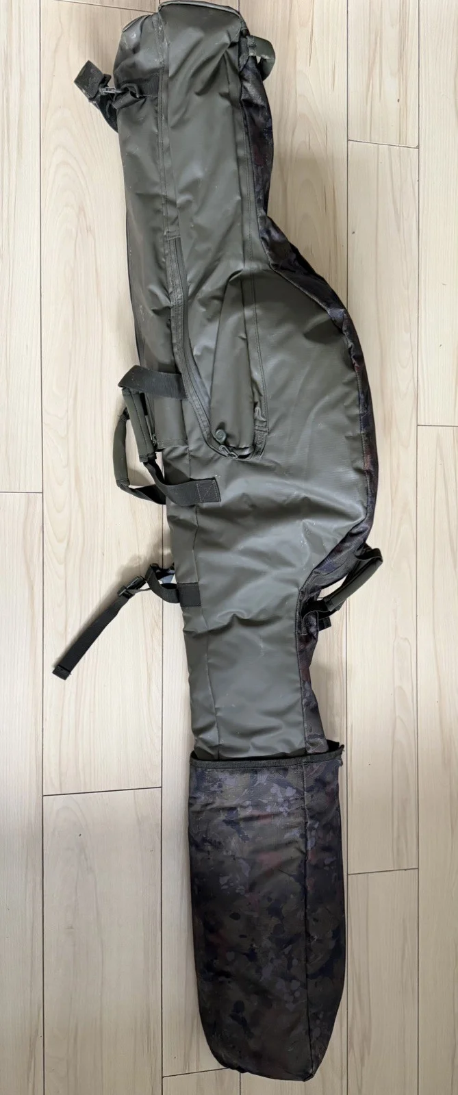 The One More Cast Heist Extendable 3-Rod Holdall is a high-quality nylon fishing luggage designed for carp fishing enthusiasts. The heist model features a green colour and is specifically tailored for holding up to three rods securely while on the go. With the extendable design, this holdall provides ample storage space and protection for your fishing gear.The rod holdall is in good used condition, adjustable in height so suitable for most rods and gives great protection with additional storage pockets on the outside.