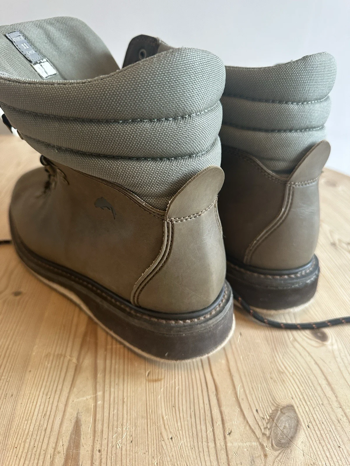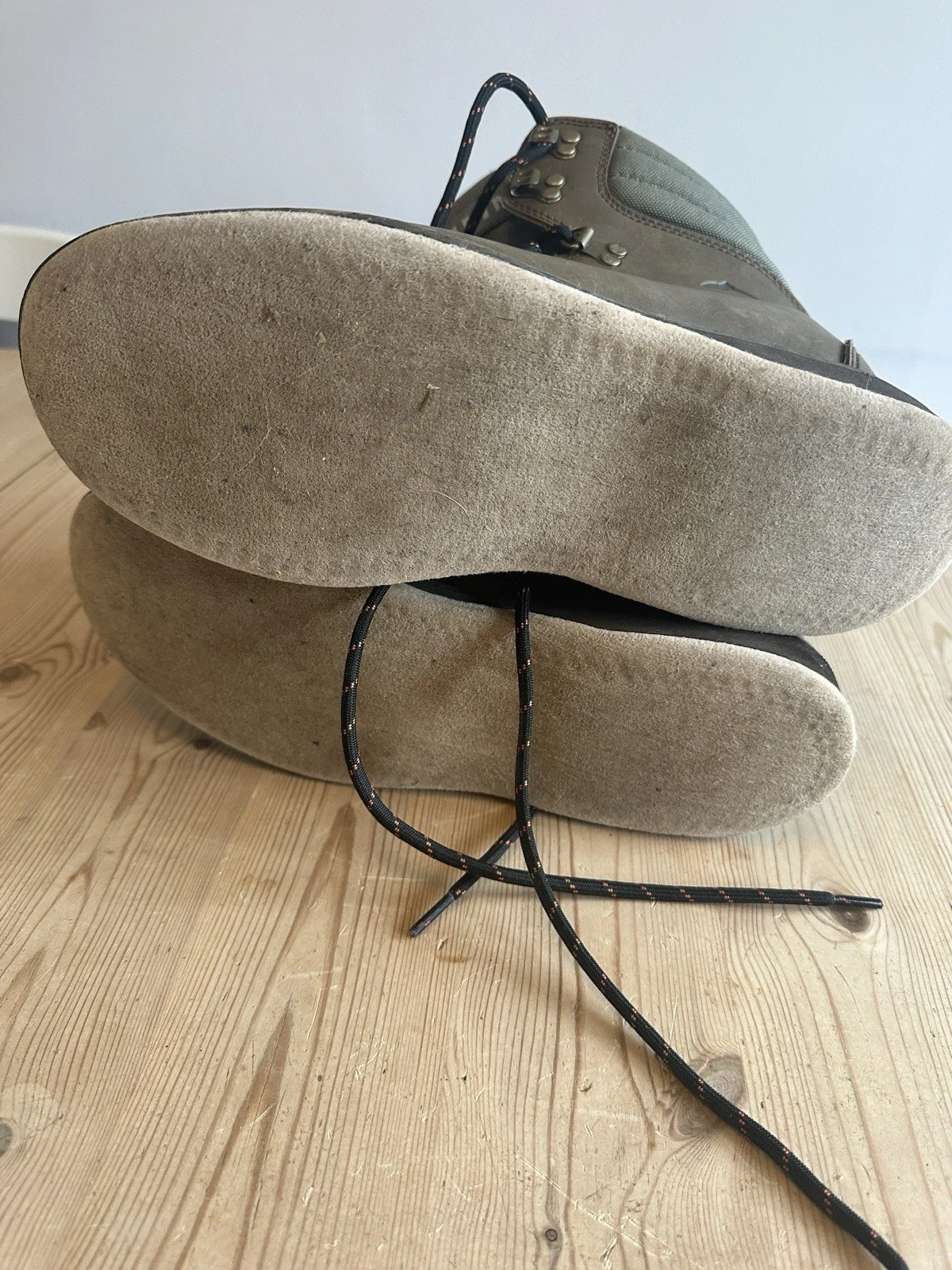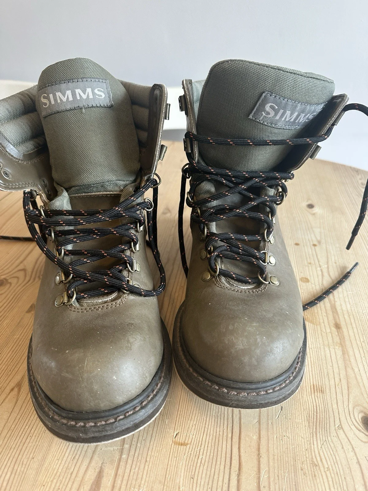 Long loved pair of simms leather hpper wading boots with felt soles. Ive had these for years, well worn in and comfy, perfect for the trout bum look if you know what I mean.Unfortunately due to a foot injury Im now a size 11 so these are off to a new home
