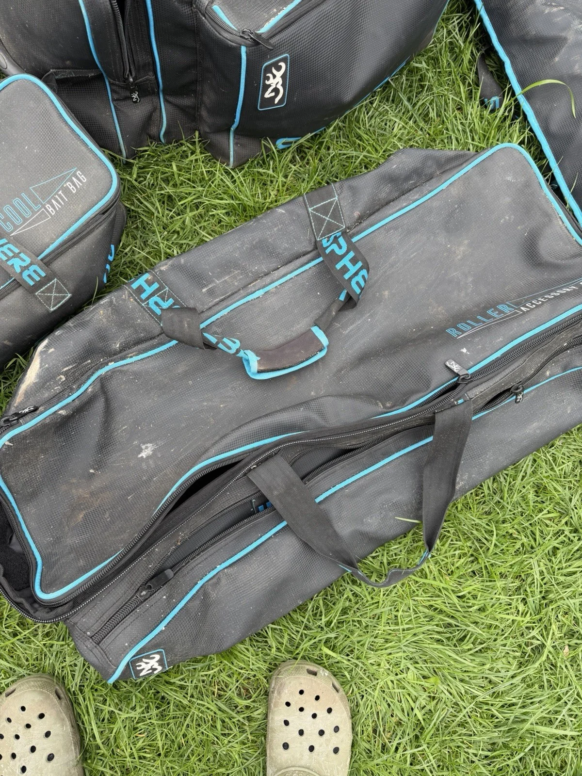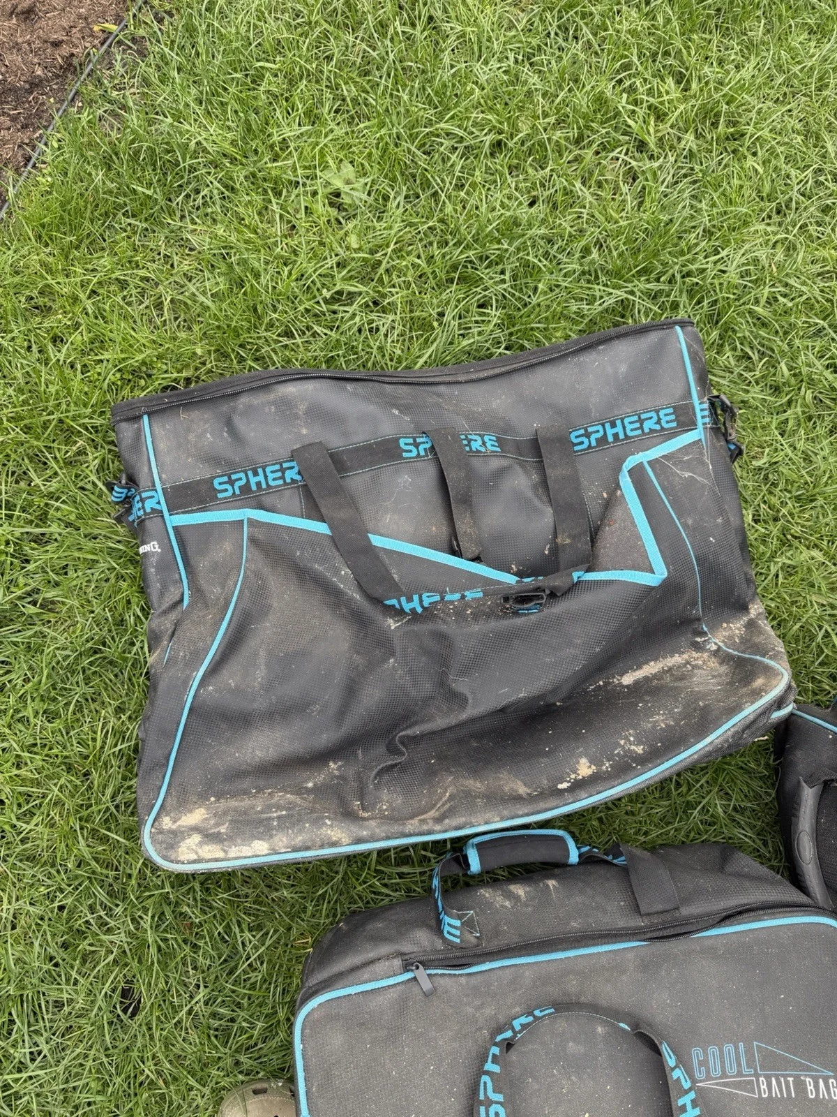 We have more or less the complete browning sphere luggage range. Ideal for a match angler.1 x 110L large carry mult picket bag1 x large pole holdall 190cm1 x accessories bag1 x bait bag1 x net bag.All this in total was over £350Needs a good clean but it’s solid material and will clean up nicely. Been in storage for around a year.No damage to any piece and zips work as expected