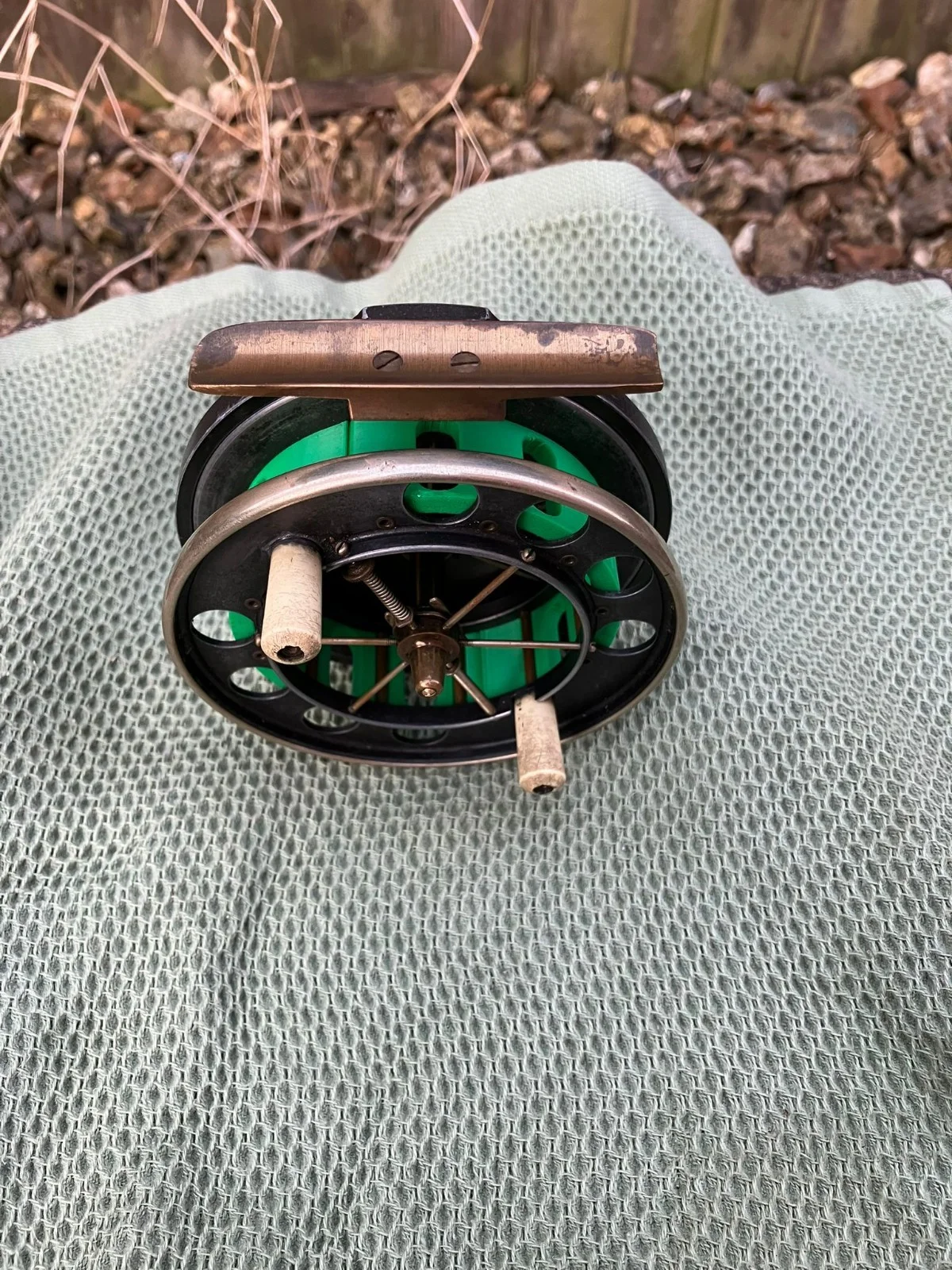 Allcock Aerial 7950 4" Narrow drum, v-check, with nickel-silver rim. Recently been to Garry Mills, where the grub screw was replaced and a custom made arbour fitted, using a 3D printer, individually made per reel. Assists with line retrieval as diameter increased. This reel dates from around the 1930s, in all likelihood it would have been retailed by someone like Farlows as the german-silver rim was an additional feature to the standard reel, this optional extra is mentioned in the Farlow's catalogues at the time. I used this reel in the last two weekends of the river season, very minor wobble which decide to leave even after Garry tweaking it. I've posted a video to show it spinning. Good clean handles, foot has been filed slightly, probably to fit a salmon rod. Check in is good strong order in either direction. Will be posted RM next day delivery. For Delivery Monday-Friday. Not Saturday as that really is expensive nowadays.