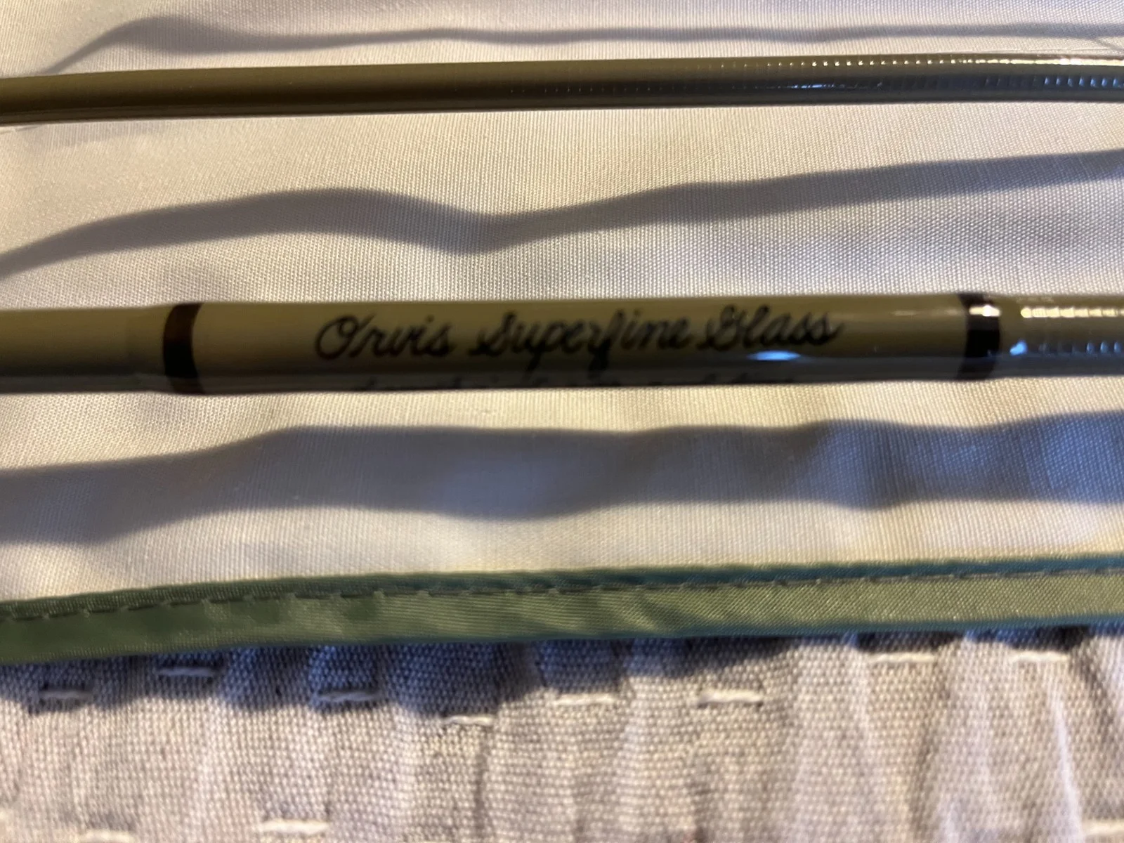 I bought this Orvis Superfine Glass Fibre 7ft 3wt rod for trout and grayling fishing on the River Meon in Hampshire. It was used several times (as can be seen from the photos of the cork handle). An excellent small stream rod, being glass fibre it's more robust/ durable than carbon fibre if you find yourself fishing in some "tight" spots.Since 2019 the rod has been stored inside unused, in the rod sock and within the rod tube. I should mention that the exterior of the rod tube has some marking and a number of light scratches but otherwise is in good order. No dents or "dings", just some "witness marks" to it having done its job of protecting the contents.