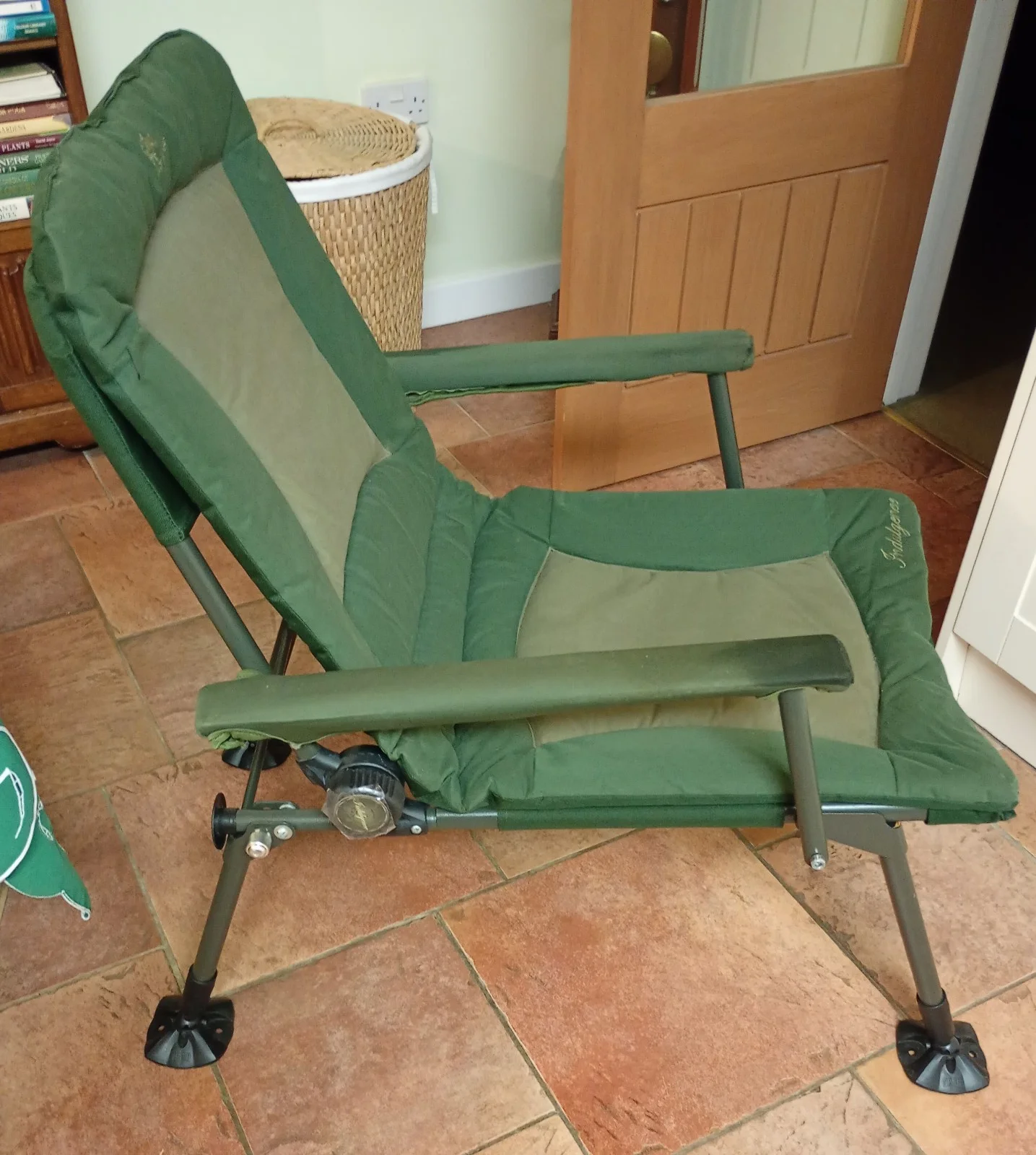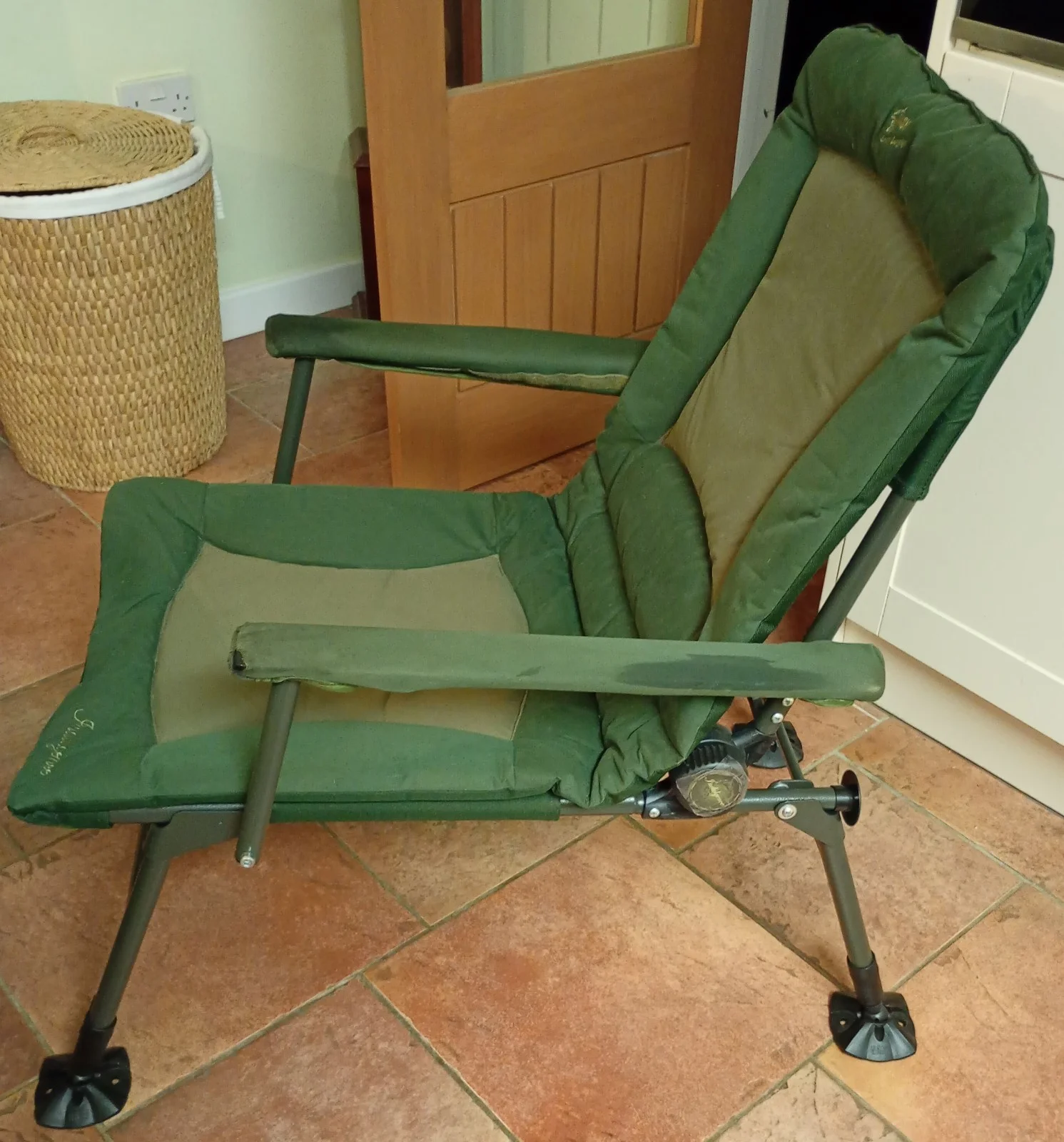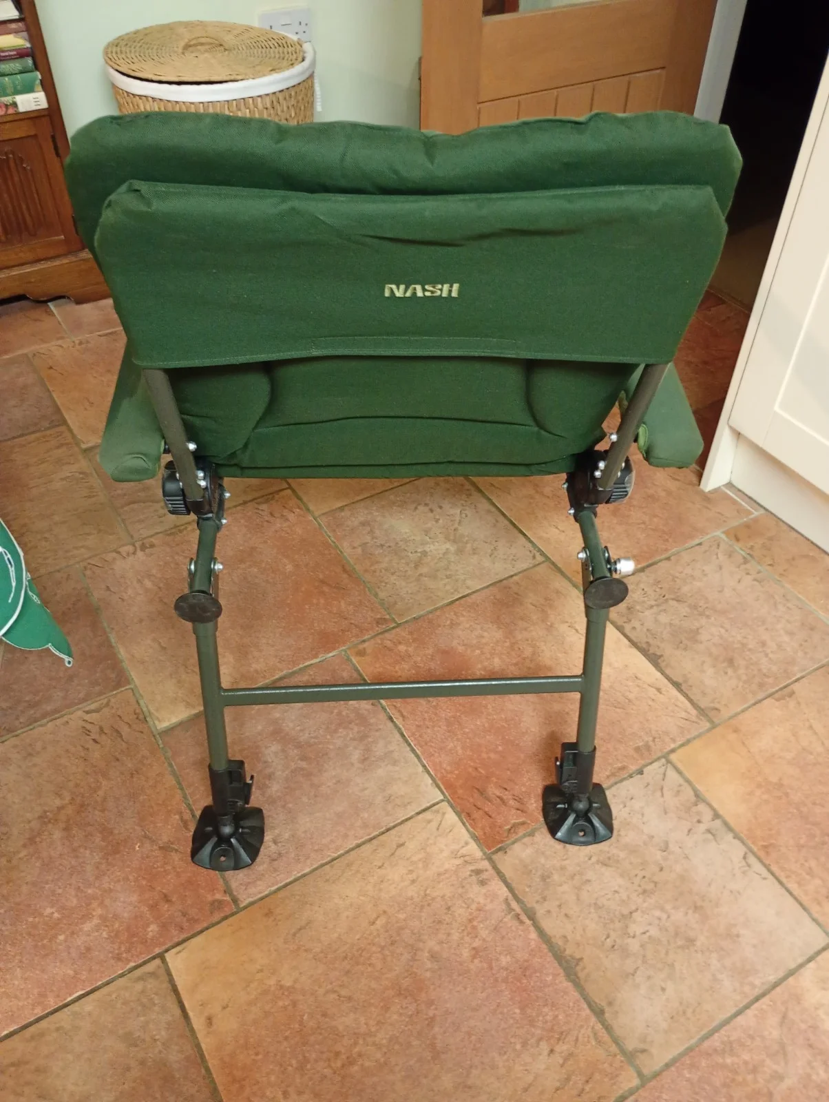 Nash Indulgence Daddy Long Legs fully reclining and height adjustable fishing chair. Twin armrest for support. Never used outside in excellent condition.Ideal for anyone who needs a comfortable seat whilst fishing.