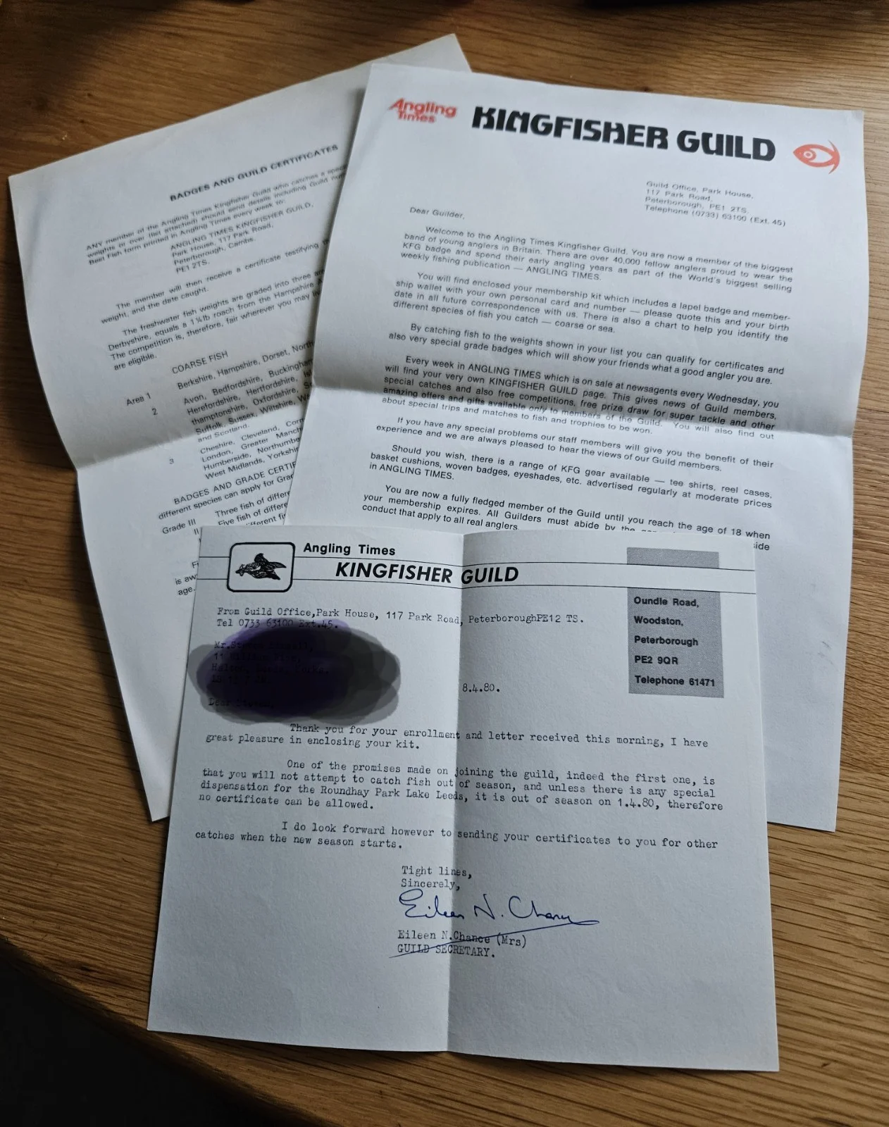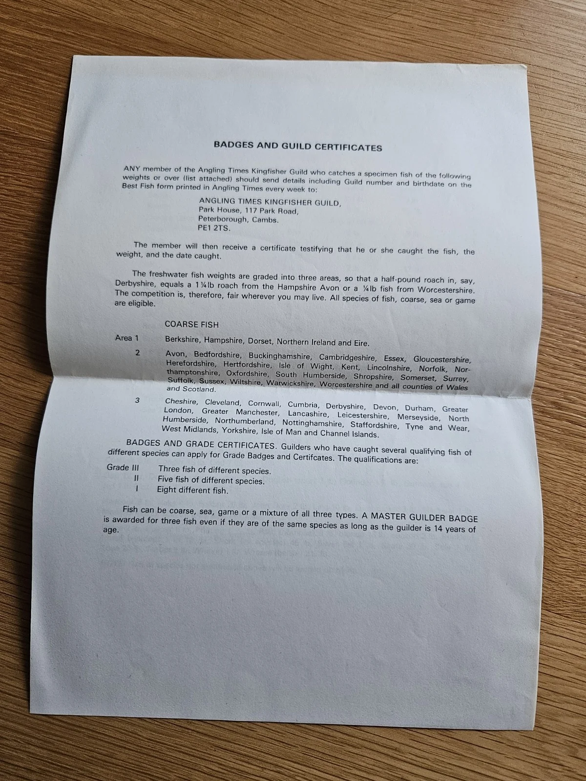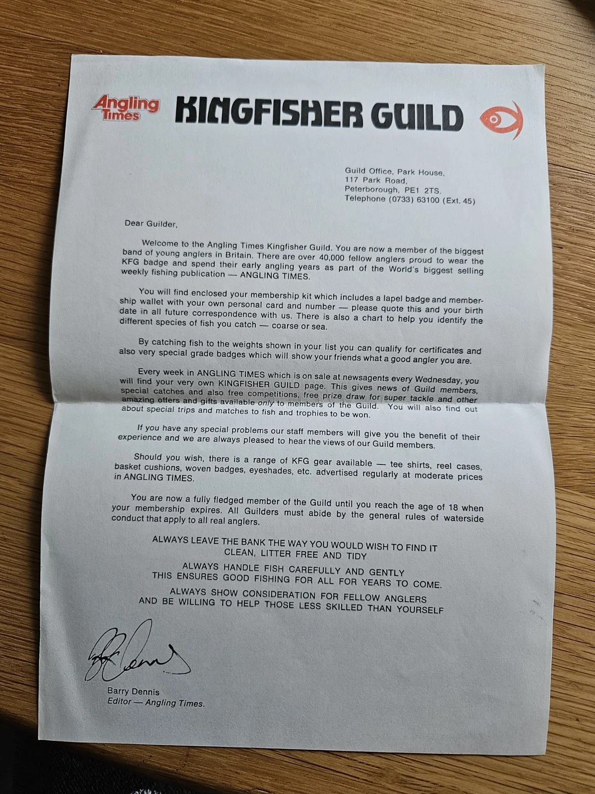 Vintage Angling Times Kingfisher Guild documentation and membership badge 1980