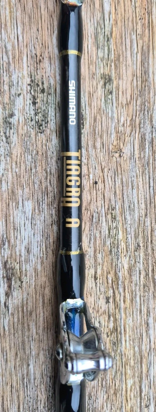 HERE I HAVE A SUPERB SHIMANO TIAGRA A STAND UP 3050R BIG GAME BOAT ROD.THE ROD IS IN SUPERB CONDITION THIS IS THE A SERIES WHICH IS TOP OF THE RANGE.NO BAG.
