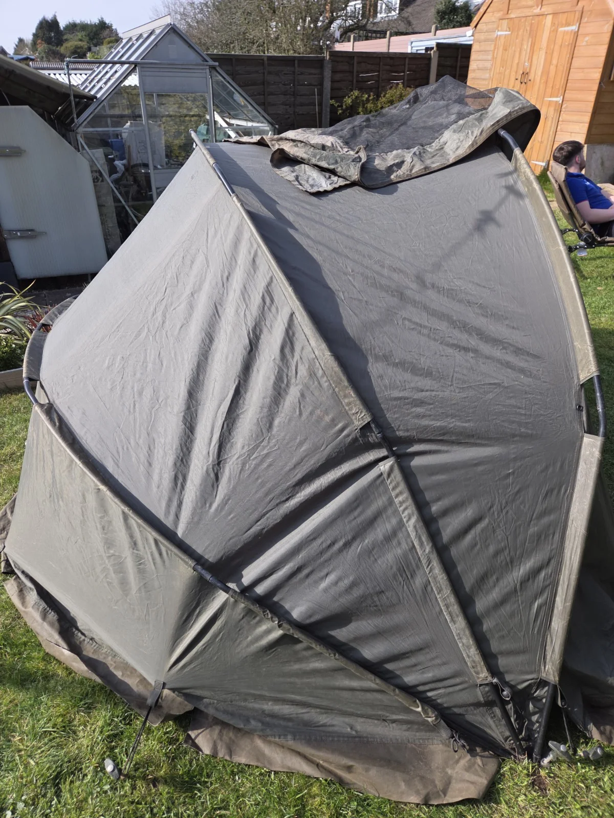 The Trakker Bivvy 1 Men is a high-quality, one-person bivvy tent designed for outdoor enthusiasts, especially anglers. Made from durable polyester material, this 4-season bivvy can withstand various weather conditions. With a spacious interior and one convenient door, it provides ample room for a comfortable night's sleep. The carrying case feature makes it easy to transport, while the green colour adds a stylish touch to your outdoor adventures. The 280 cm length ensures a comfortable sleeping area, perfect for a solo fishing trip or other outdoor activities. This bivvy also includes a mosquito net which zips in - you cab also take the whole front off if you want to use it as a brolly.
