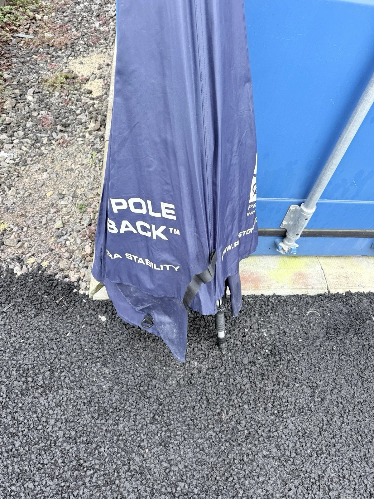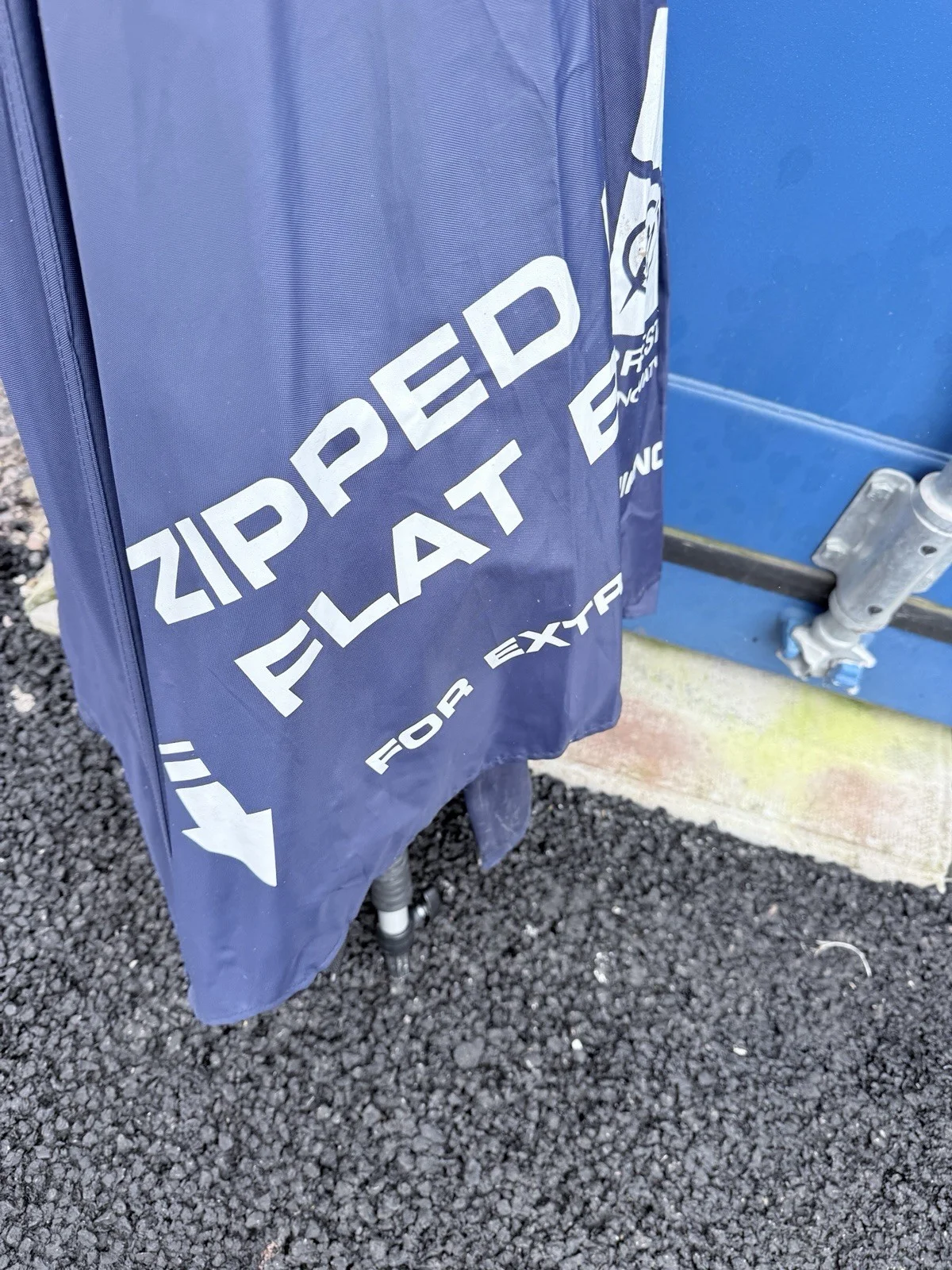 Used flat back Preston brolly .. massive .. zips work carry bag is worn and has a hole . Umbrella is all good although centre pole is still to remove at times when retracted