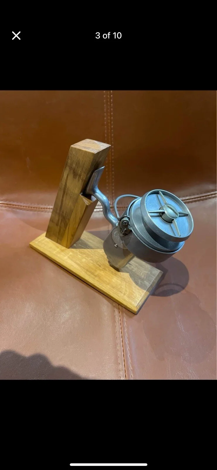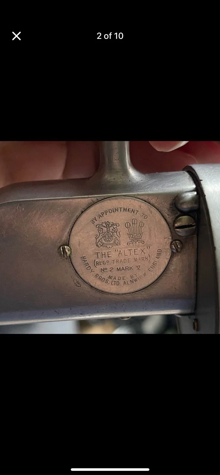 Vintage Hardy Altex fixed spool reel, works well. Comes with wooden stand to display, as pictured.