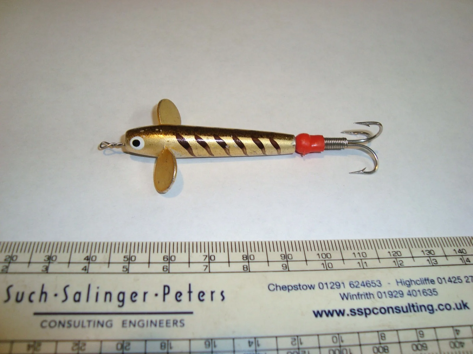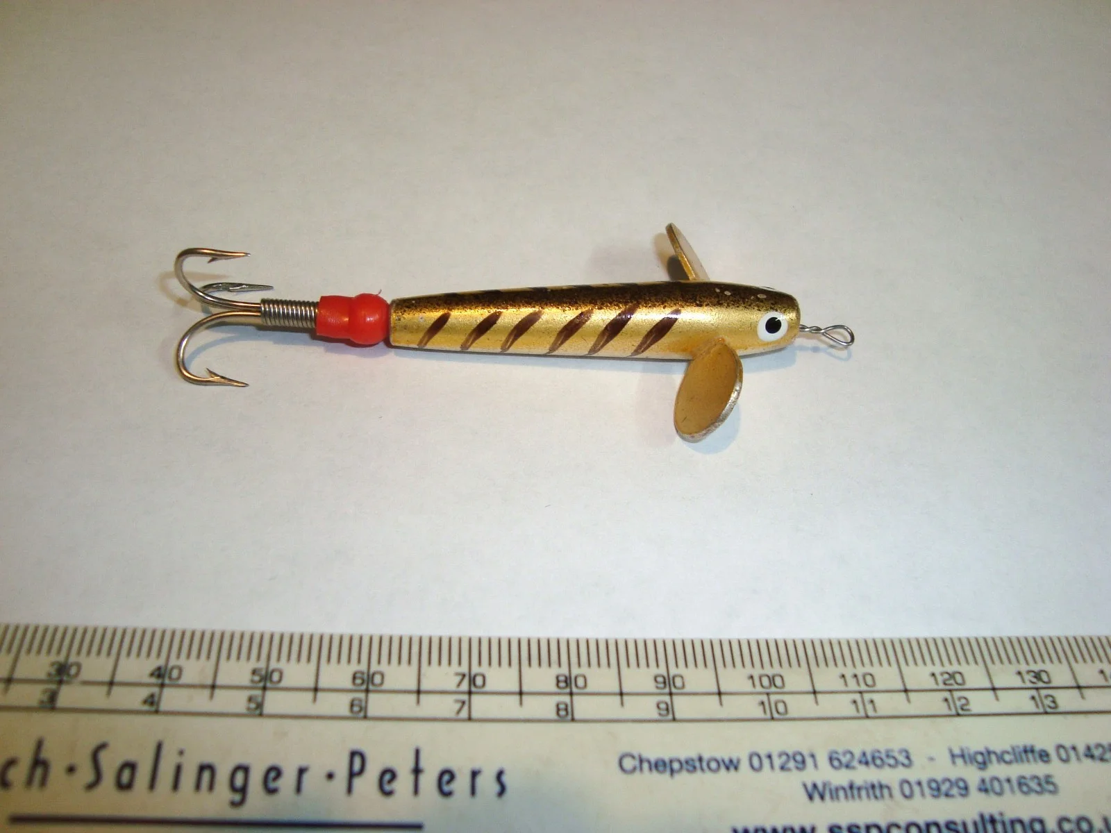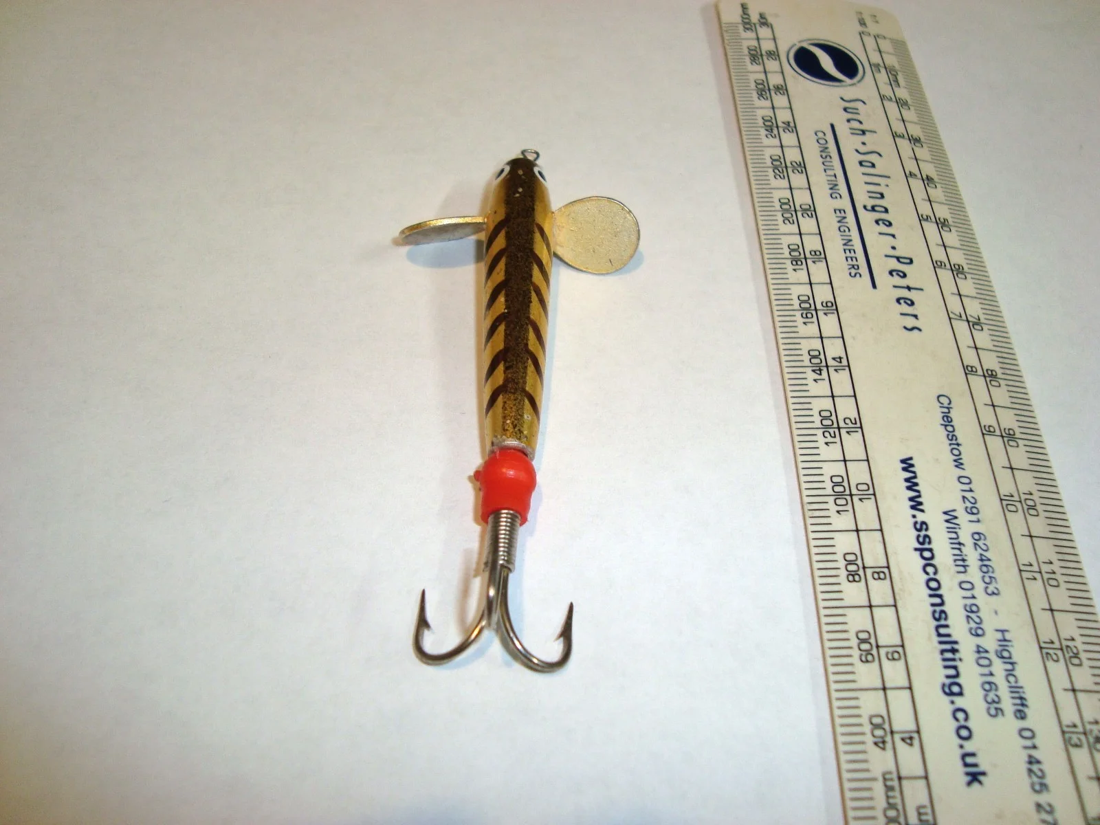 Hi and welcome to the Barnabas factor.This listing is for an old/bygone unnamed good looking devon minnow withan attractive original design.The body measures approximately 5 cm. (excluding the mount).Looks to have been hand-finished.A mount has been added.In excellent condition. Please see the other listed lures. Please see also the other listed items including two Yesterday Tackle and Books cataloguesfrom 1992 (the same issue) with one on ebay.com-the USA site and the other on the UK site, Yesterday Tackle and Books photographs by Ray Walton from this catalogue, a rare Lo-Mass float display card, a vintage float or bobber, two unusual Hardy Byers Leak Tackles, unused in their respective original packets, Bruce and Walker,Richard Walker Carp Hooks, two Sowerbutts hooks unused in their original respective packets, other packets,vintage gut, lures, ephemera, packets, postcards, photographs, Winfield Woolworths flies and other flies, an unread, items from the late Peter Peck, a Lledo Fox's Glacier Mints boxed toy, four very old UK postal history front covers, two watercolours which are signed V.S.Addison and two watercolours by Brian Brogan of Sheffield. Have many other items to list.Please save me as a favourite seller if you would like to.Combined shipping on request. Zero extra delivery for multiplelight, slim items when sent together unless a signed For serviceis required.Money back guarantee on all items if deemed unsatisfactory including auctions. The buyer pays the return delivery.
