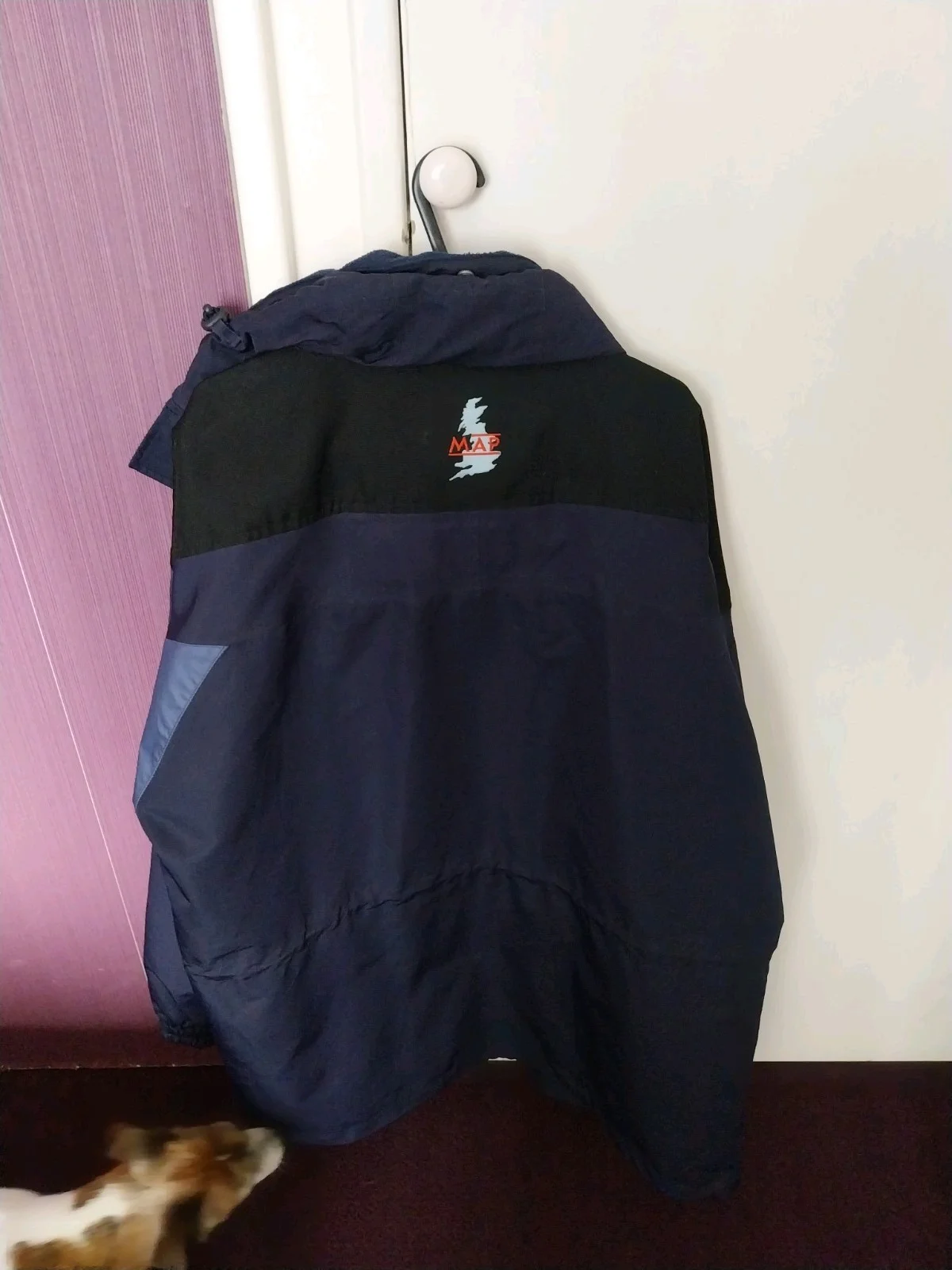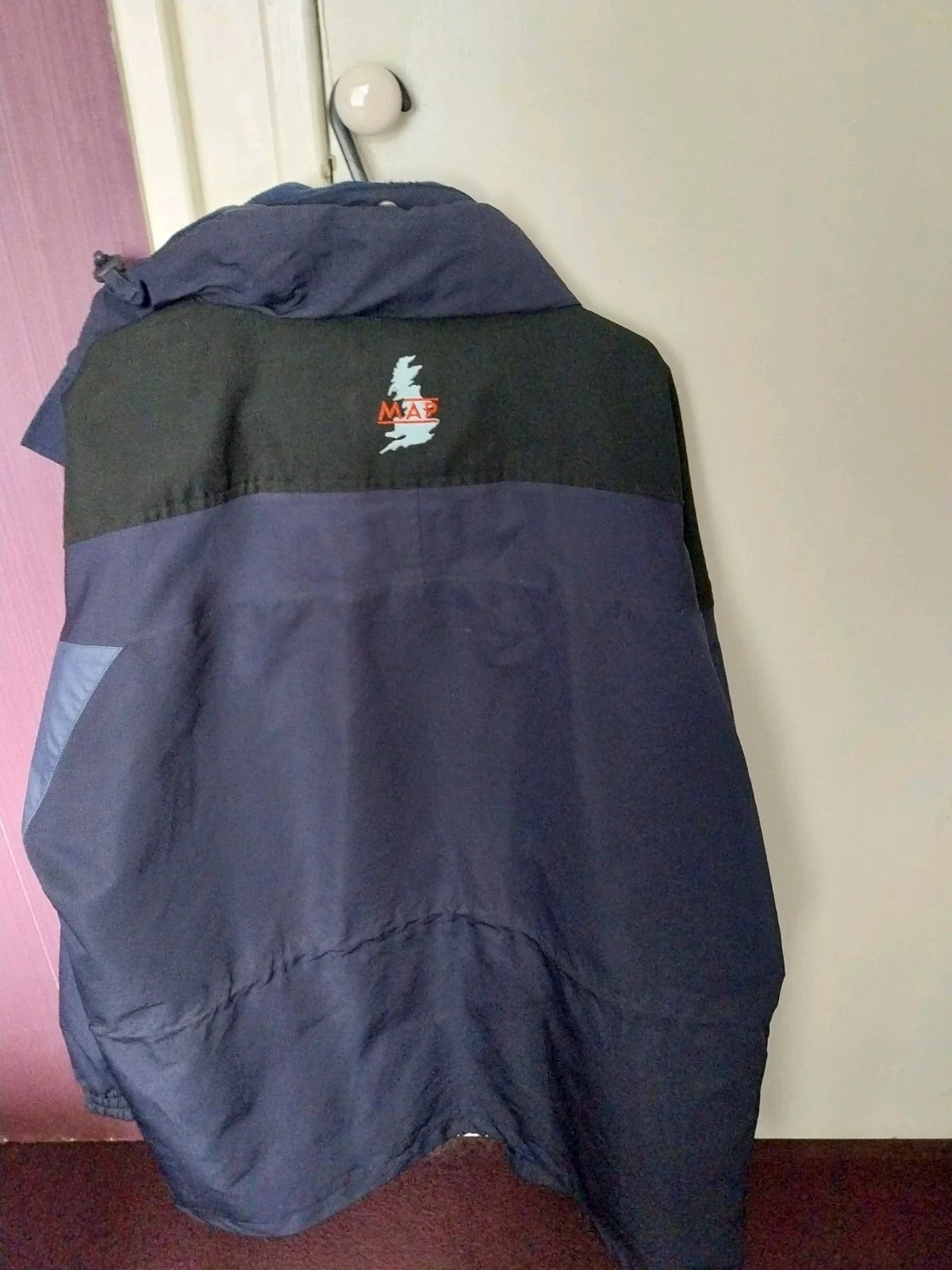 map waterproof jacket. this is a heavy and very warm jacket. has hood concealed in the collar. full length zip and storm flap. plenty of zipped pockets. storm cuffs. in excellent condition. all zips and fasteners work perfect.please check my other items.having a good sort out.size large.