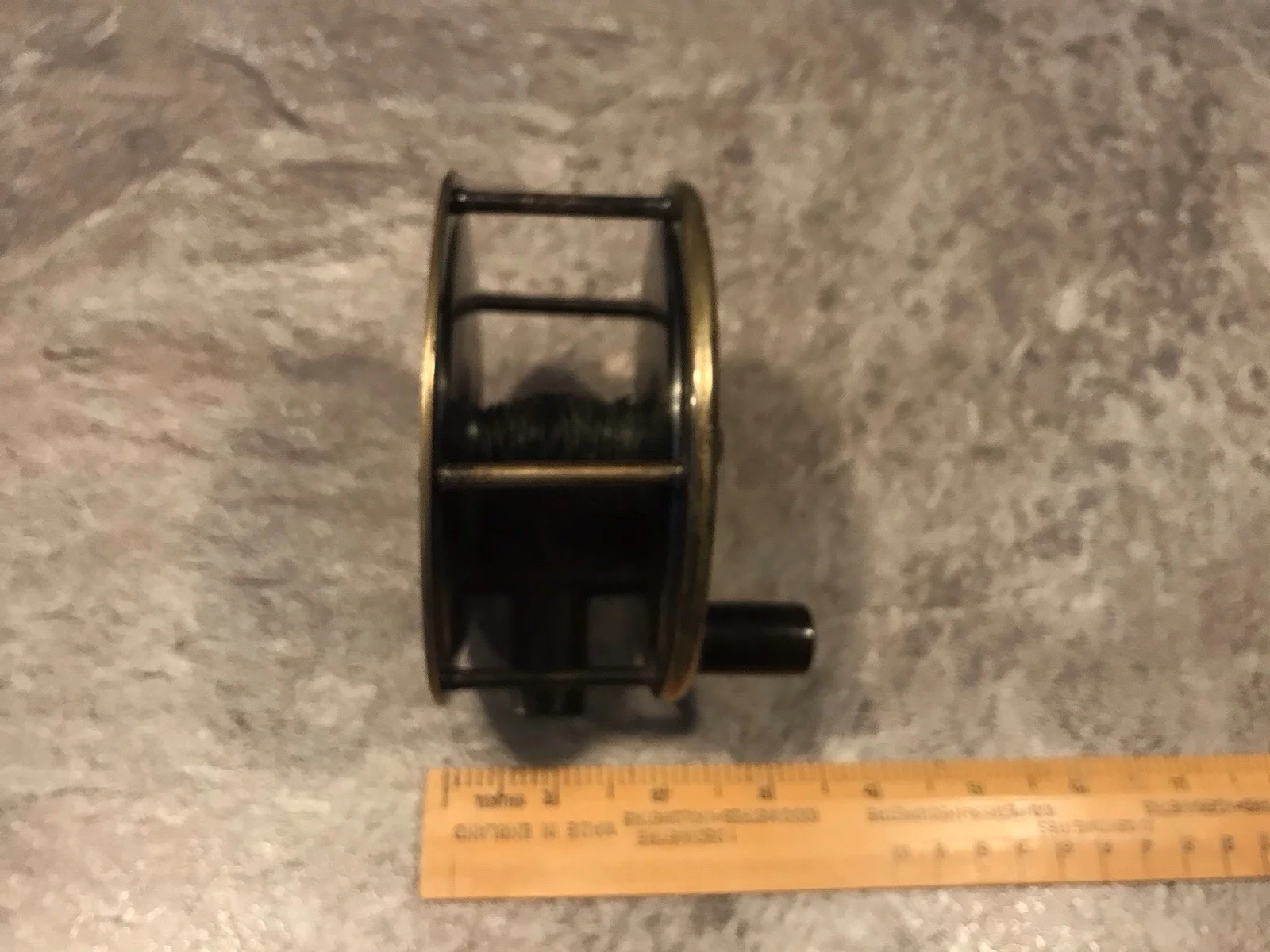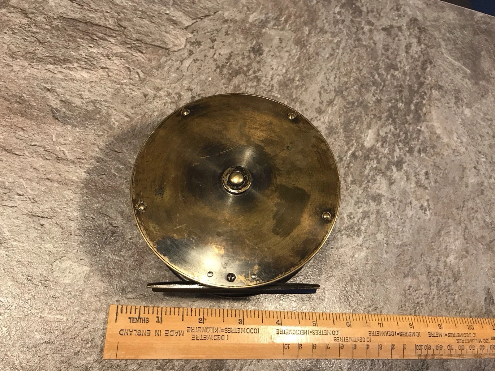 A EARLY VINTAGE 4 .25” BRASS SALMON REEL GREAT SHOW PIECE FULL WORKING ORDER