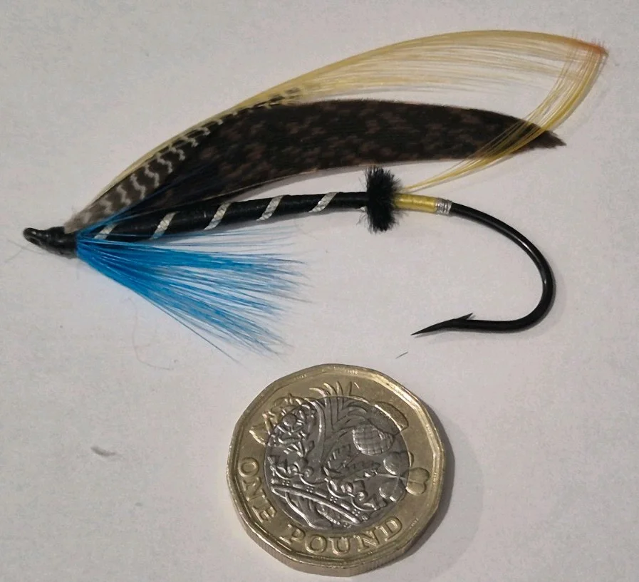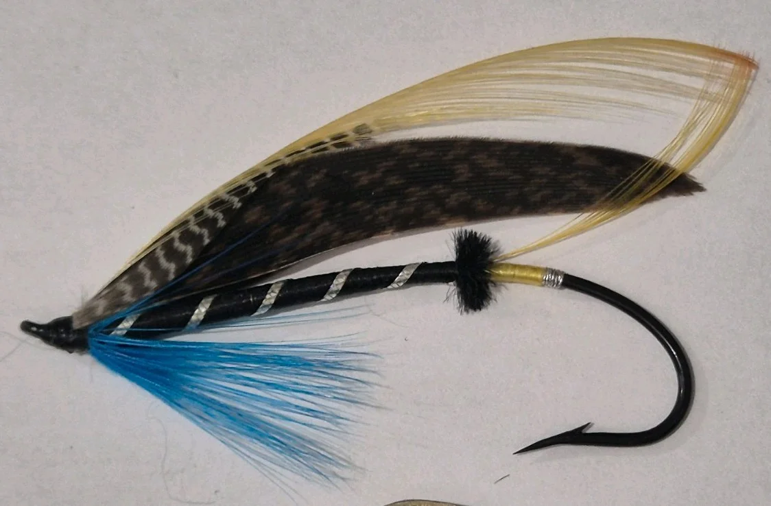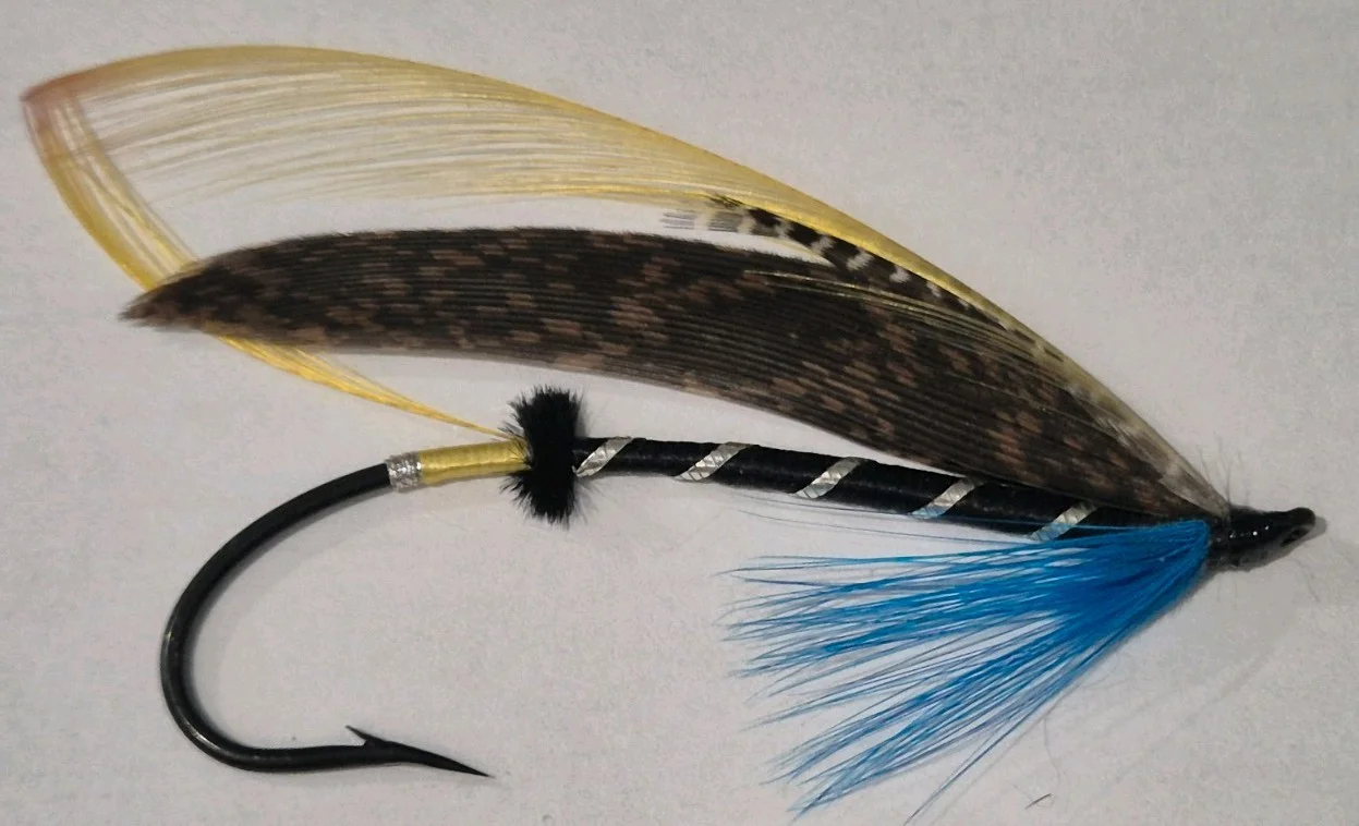 A STUNNING VINTAGE STEEL EYED SALMON FLY BEAUTIFUL COLLECTORS CONDITION 6/0