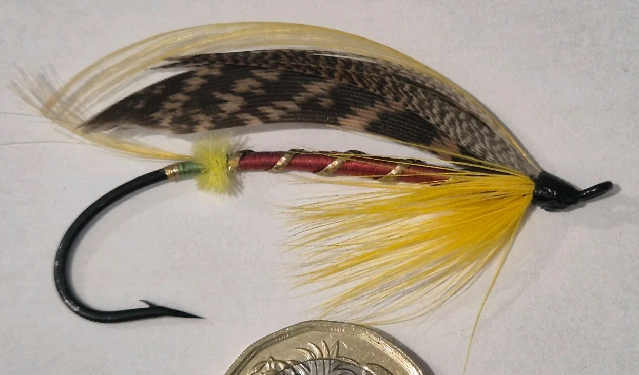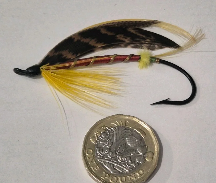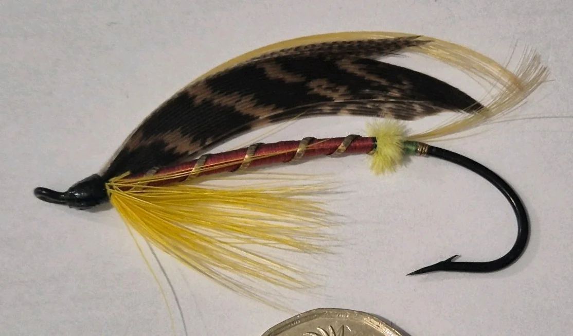 A STUNNING VINTAGE STEEL EYED SALMON FLY BEAUTIFUL COLLECTORS CONDITION 6/0