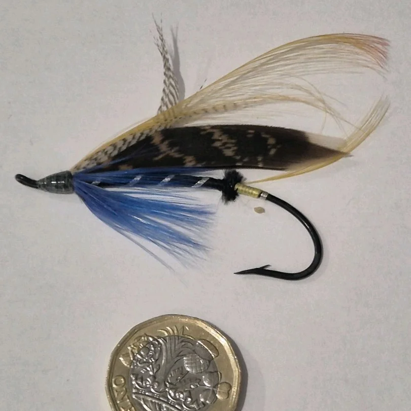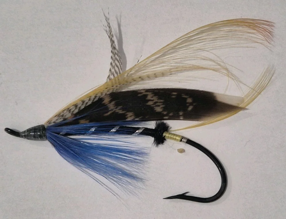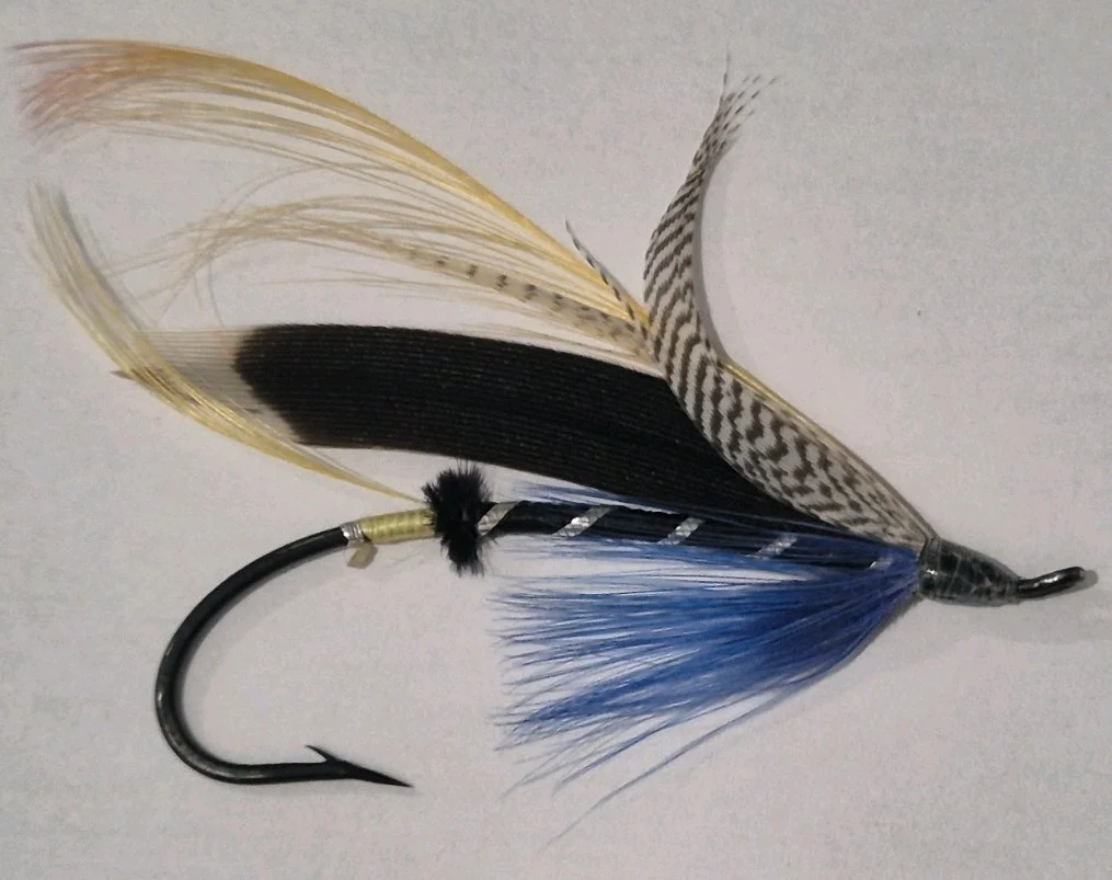 A STUNNING VINTAGE STEEL EYED SALMON FLY BEAUTIFUL COLLECTORS CONDITION 6/0