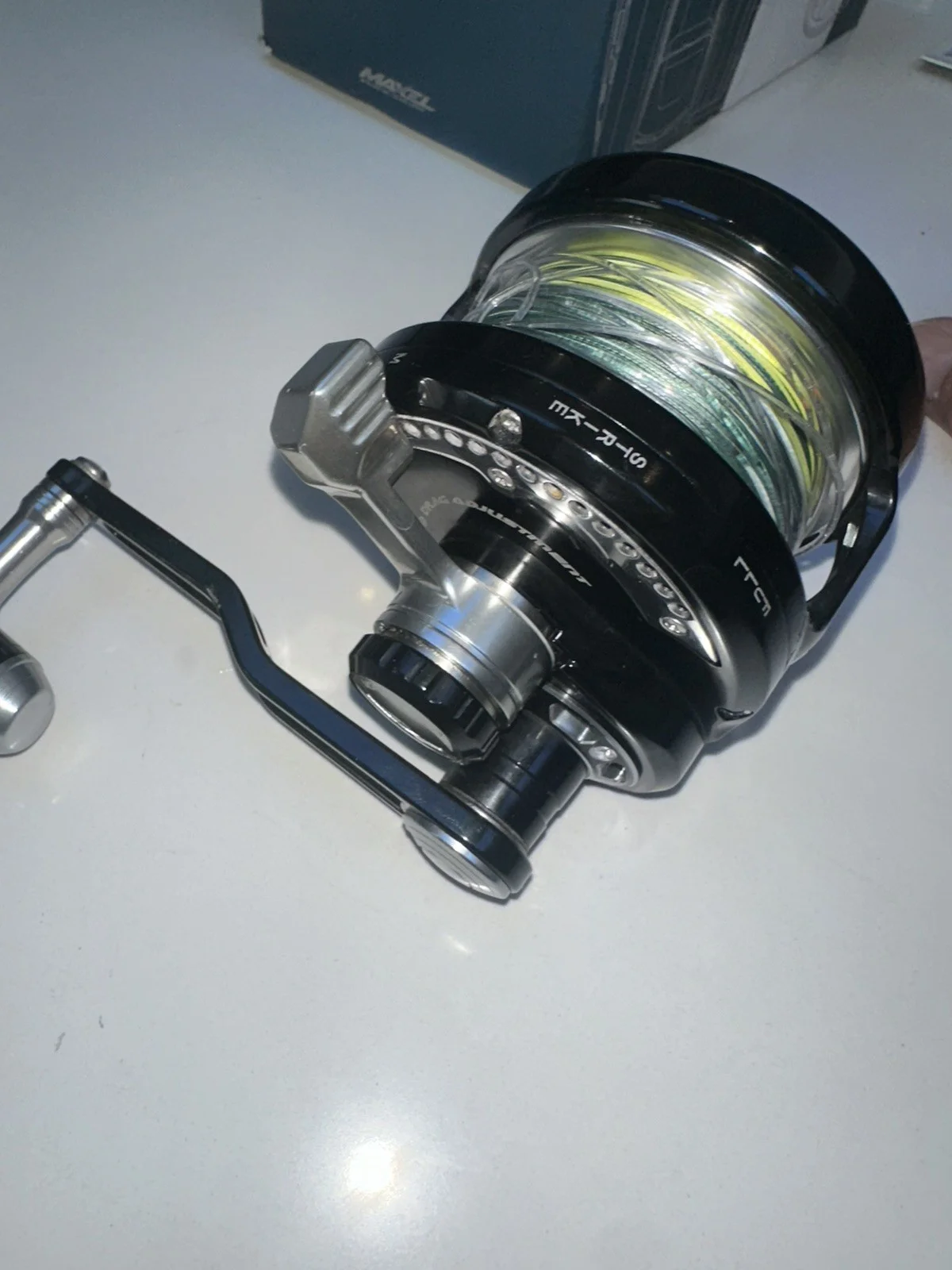 Maxel Rage 90N slow pitch jigging reel. It is RIGHT HAND It’s barely been used I’ve taken it on 3 trips but I’ve not used it as I don’t like slow pitch jigging. It’s got a few marks on it as you’d expect but it is mostly mint and in perfect condition. Box and paperwork spooled up with braid In the UK with all taxes paid Any inspection welcomed and may be able to meet to exchange