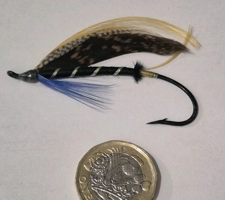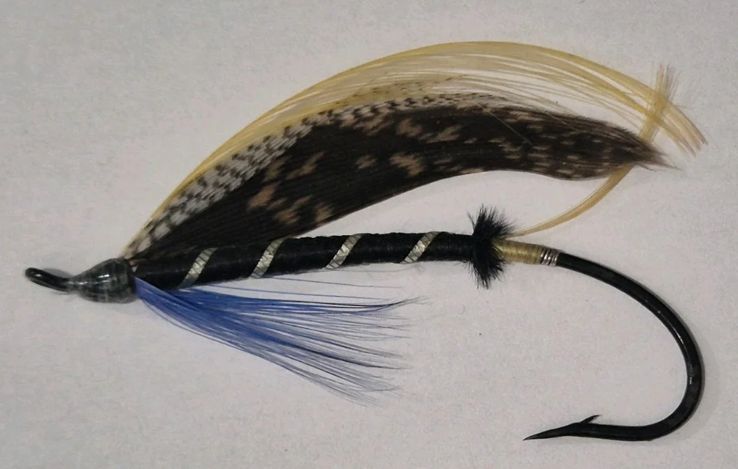 A STUNNING VINTAGE STEEL EYED SALMON FLY BEAUTIFUL COLLECTORS CONDITION 6/0