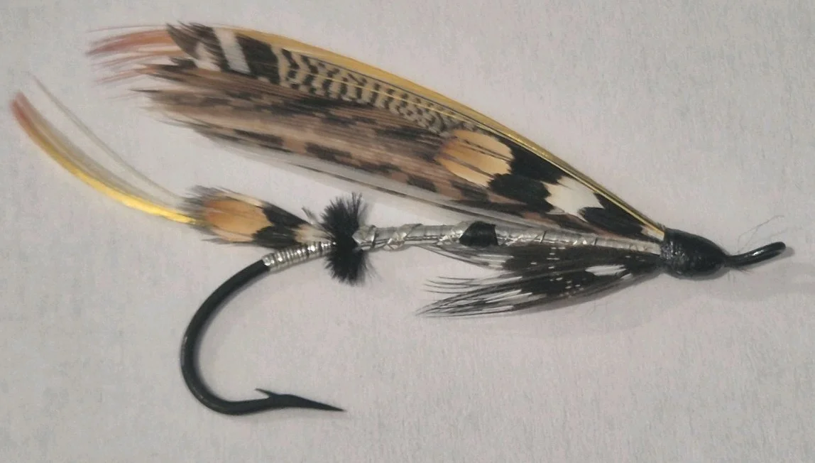 A STUNNING VINTAGE STEEL EYED SALMON FLY BEAUTIFUL COLLECTORS CONDITION 6/0