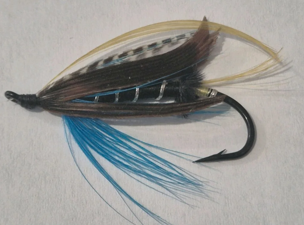 A STUNNING VINTAGE STEEL EYED SALMON FLY BEAUTIFUL COLLECTORS CONDITION 6/0