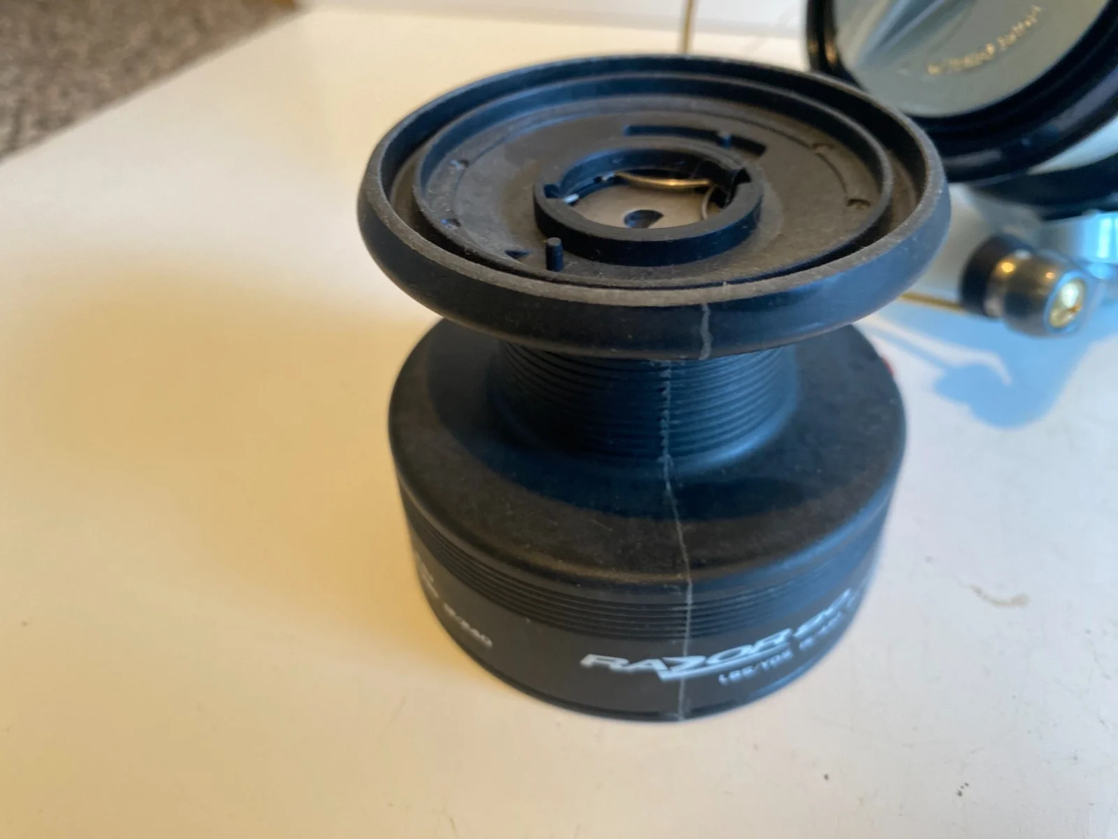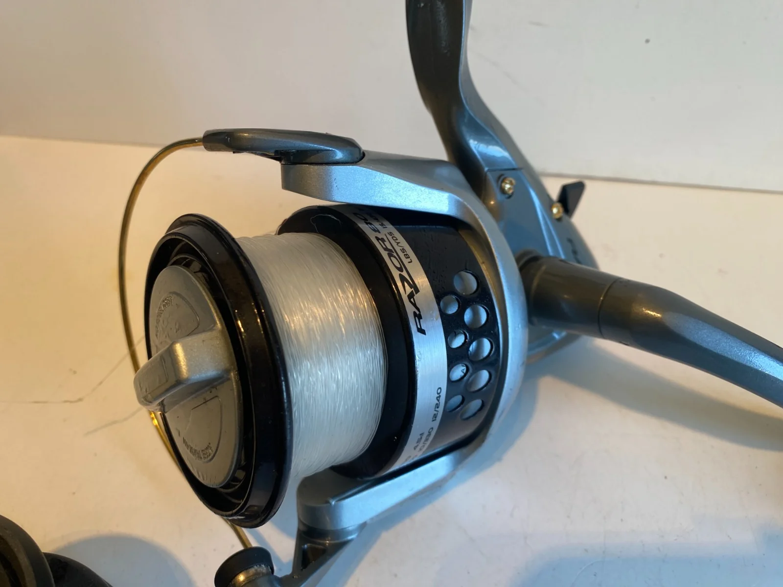 VERY GOOD CLEAN OKUMA RAZOR 80 FIXED SPOOL FISHING REEL, THIS SUPER OKUMA RAZOR 80 FIXED SPOOL FISHING REEL IS IN VERY GOOD CLEAN CONDITION SOME MARKS WERE IT HAS BEEN IN A TACKLE BOX BUT IT LOOKS UNUSED, IT COMES WITH TWO SPOOLS ONE IS LOADED WITH GOOD STRONG CLEAR LINE, SUPER BEACH / PIER REEL.