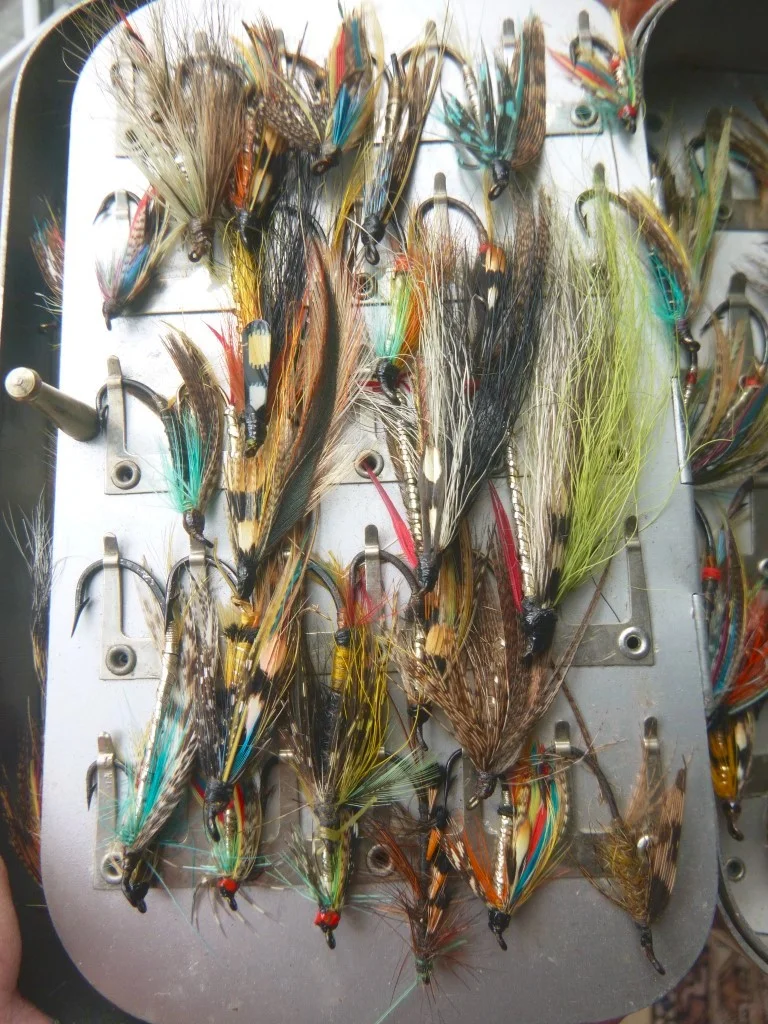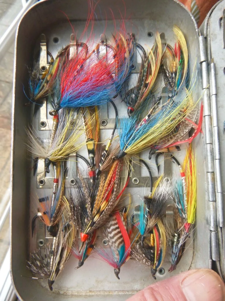 Vintage Wheatley Double Sided Silmalloy Fly Box with Salmon Flies - Fly Fishing