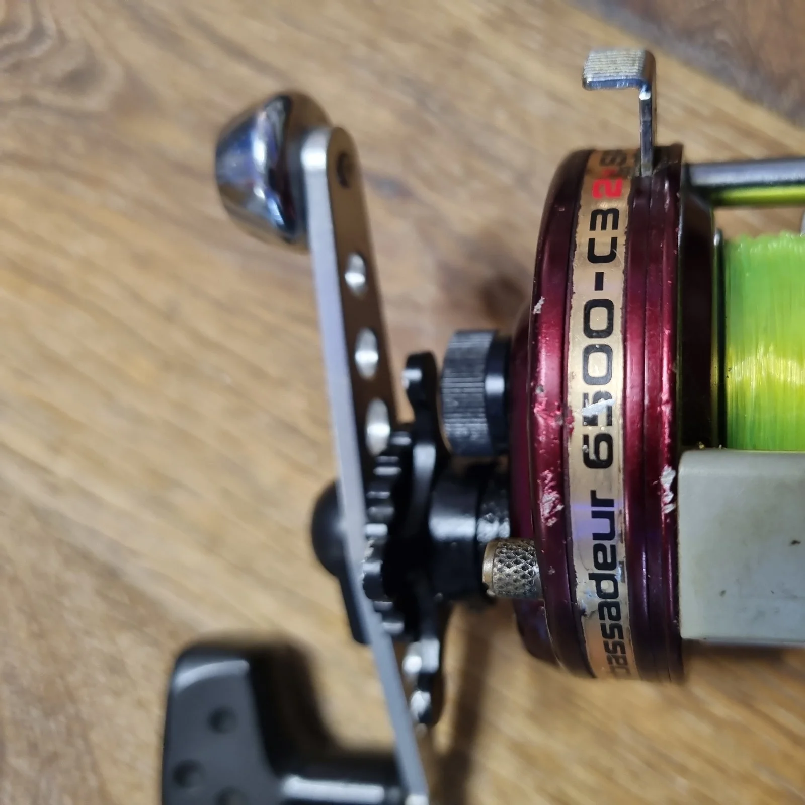 Abu Ambassadeur 6500 C3 2 speed. its in good used condition everything works as it should. has a few battle scars but still a very good reel