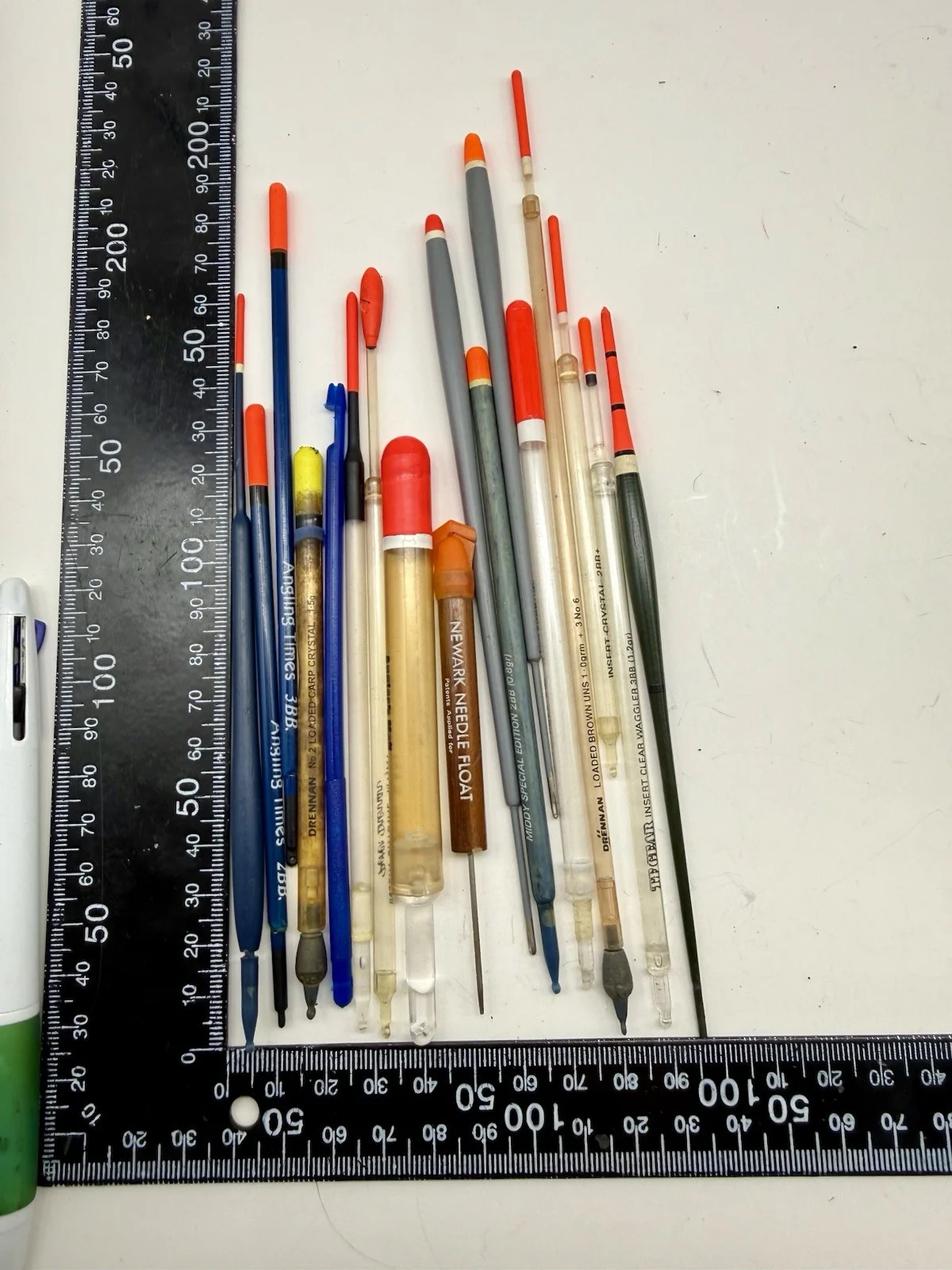 This item is the lovely selection of coarse fishing floats as pictured. I recently acquired some lovely vintage floats and these were with them. I’ve shown their approx sizes in my photos. There are 3 porcupine quill ones in the top left of my first picture. These will all need eyes adding and some of the paint has come off. There’s a nice overall selection here. Therese are some with markings; Newark needle float, peacock waggler 3BB, a couple of angling times ones, no 4 giant waggler, speci wagg 5AAA+, dick clegg Britannia peacock and a good few others. There are 50 individual pieces. A mixture of modern and vintage. Please look at the pictures I have taken to assess condition for yourself. I would be really pleased with these if I purchased them. I will pack them very well prior to sending them to the winning bidder. Please feel free to ask me any questions and do take a look at my feedback from over 9000 transactions.Thank you for looking at my auction. I frequently have preloved, retro and vintage items for sale, take a look at my other items. I am happy to combine postage costs on multiple purchases and always endeavour to keep postage costs as low as possible. Please note though that I send within the UK only.Should you win/purchase this item and have any questions or concerns please contact me prior to leaving feedback and I’ll be very happy to resolve any issues should they arise.