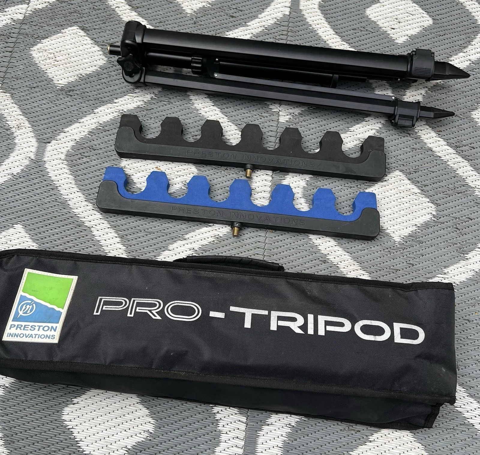 Preston innovations pro Tripod with two offbox pro Top kit Roost headsOne blue, one blackUsed but still plenty of life left Please see pictures for description Collection as there is a couple of areas with scratches onCollection from Se London This is a large item and would be expensive to postPlease do not bid if you cannot collect itGB only