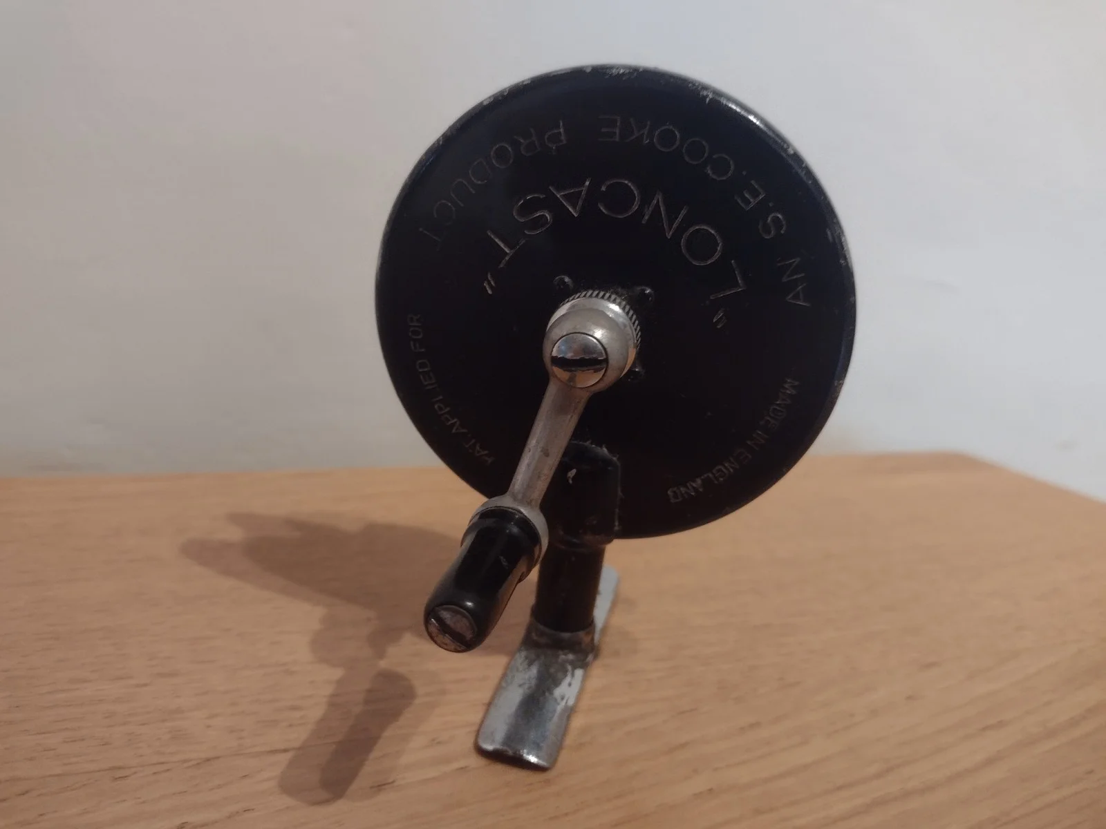 VERY RARE VINTAGE FISHING REELmaker S. E. COOKEmodel THE LONCASTA RARE OPPORTUNITY TO BID FOR A SOUGHT AFTER COLLECTIBLE VINTAGE FISHING REEL.THE LONCAST HAS A TURNTABLE FOOT MECHANISM - TURNED ONE WAY TO CAST AND THE OTHER WAY TO WIND IN YOUR CATCH
